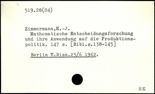 Mathematische Entscheidungsforschung und ihre Anwendung auf die Produktionspolitik.