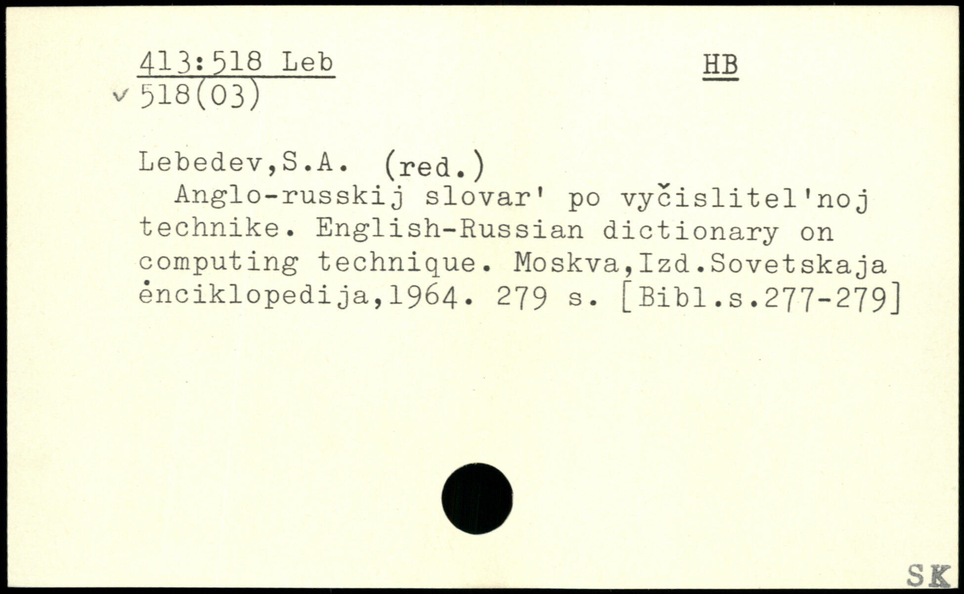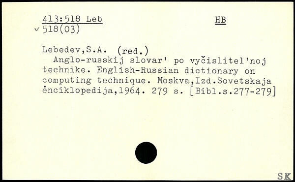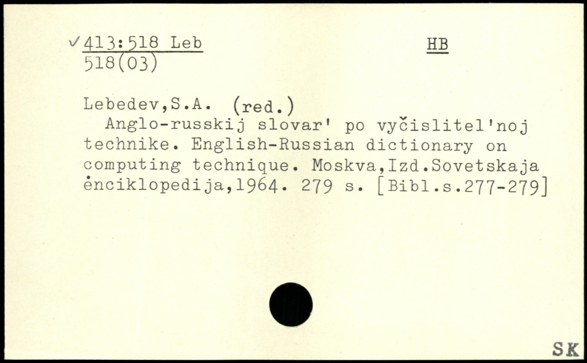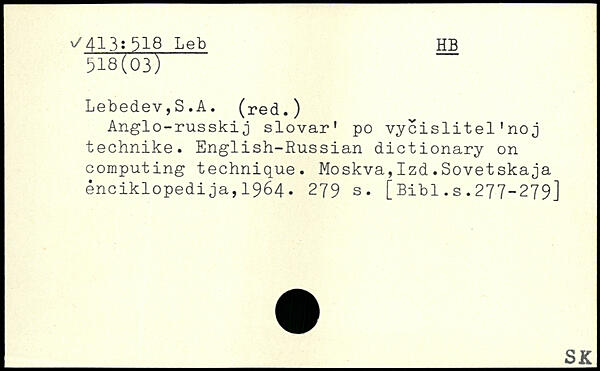 Anglo-russkij slovar' po vycislitel'noj technike. English-Russian dictionary on computing technique. Moskva,Izd.Sovetskaja enciklopedija,1964.