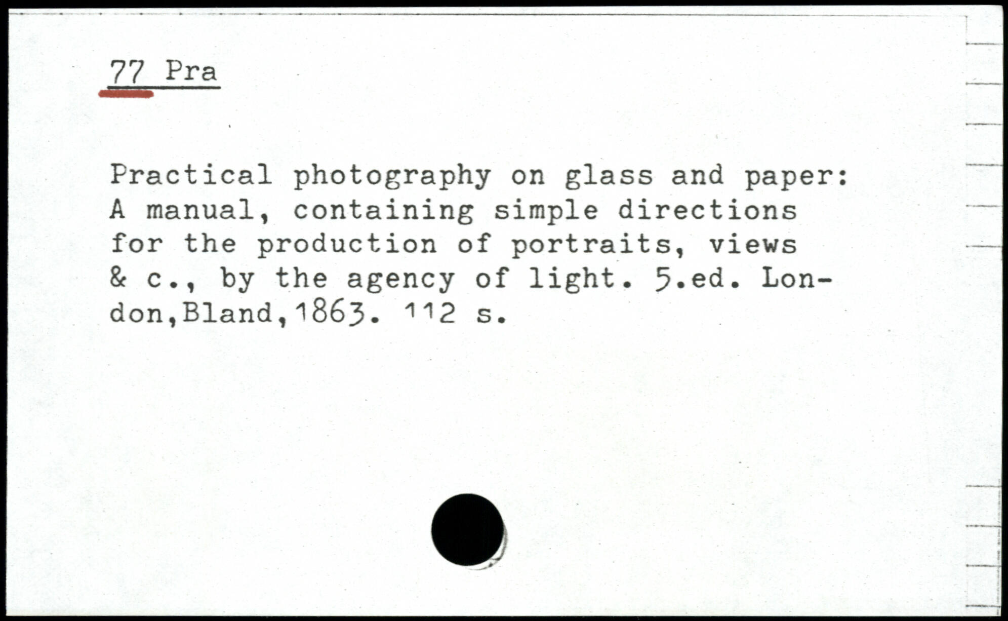 Practical photography on glass and paper: A manual, containing simple directions for the production of portraits, views — & c., by the agency of light.