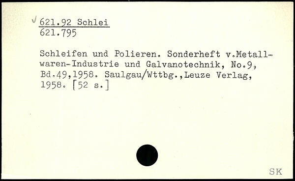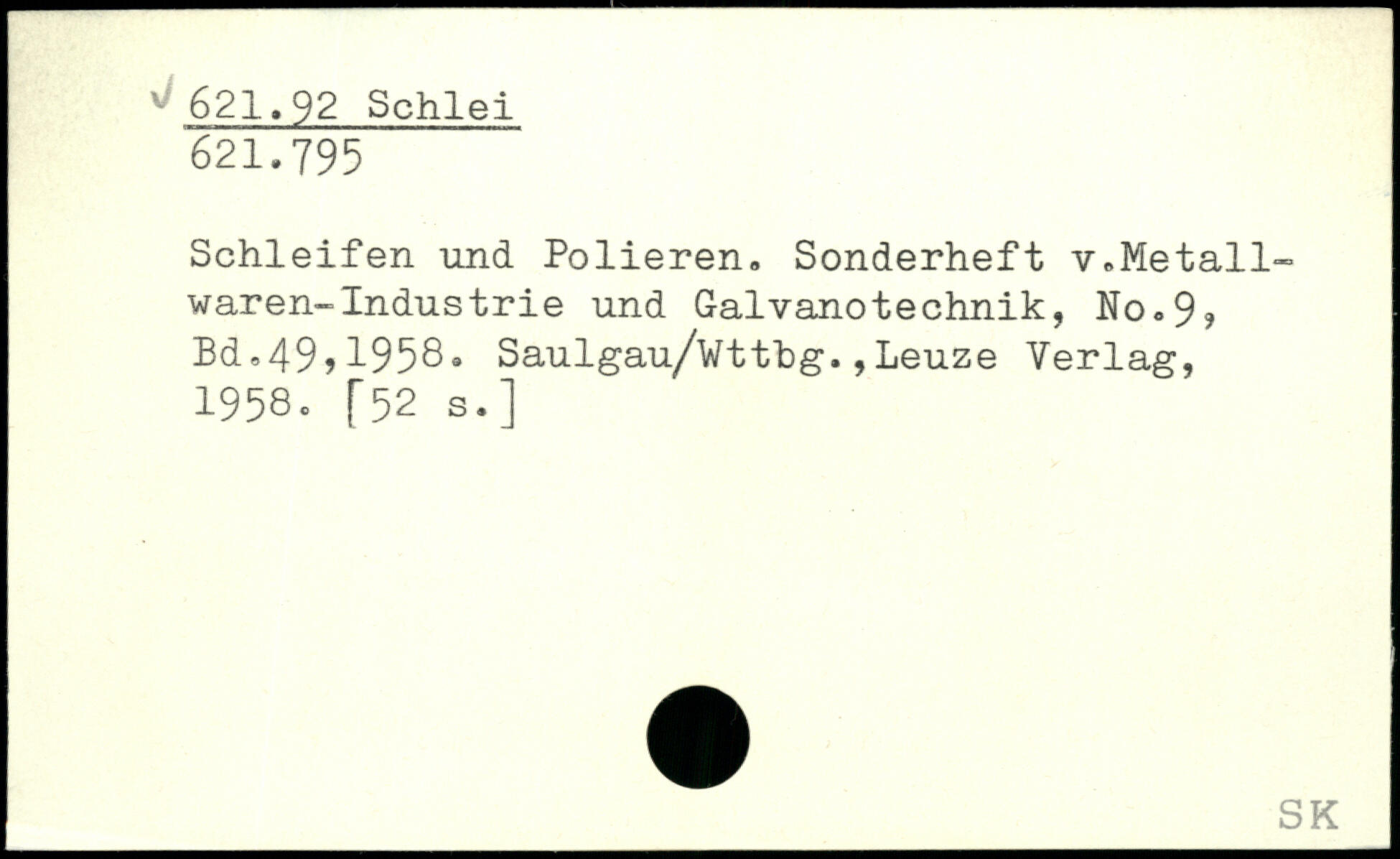 Schleifen und Polieren. Sonderheft v.Metall-waren-Industrie und Galvanotechnik, No.9