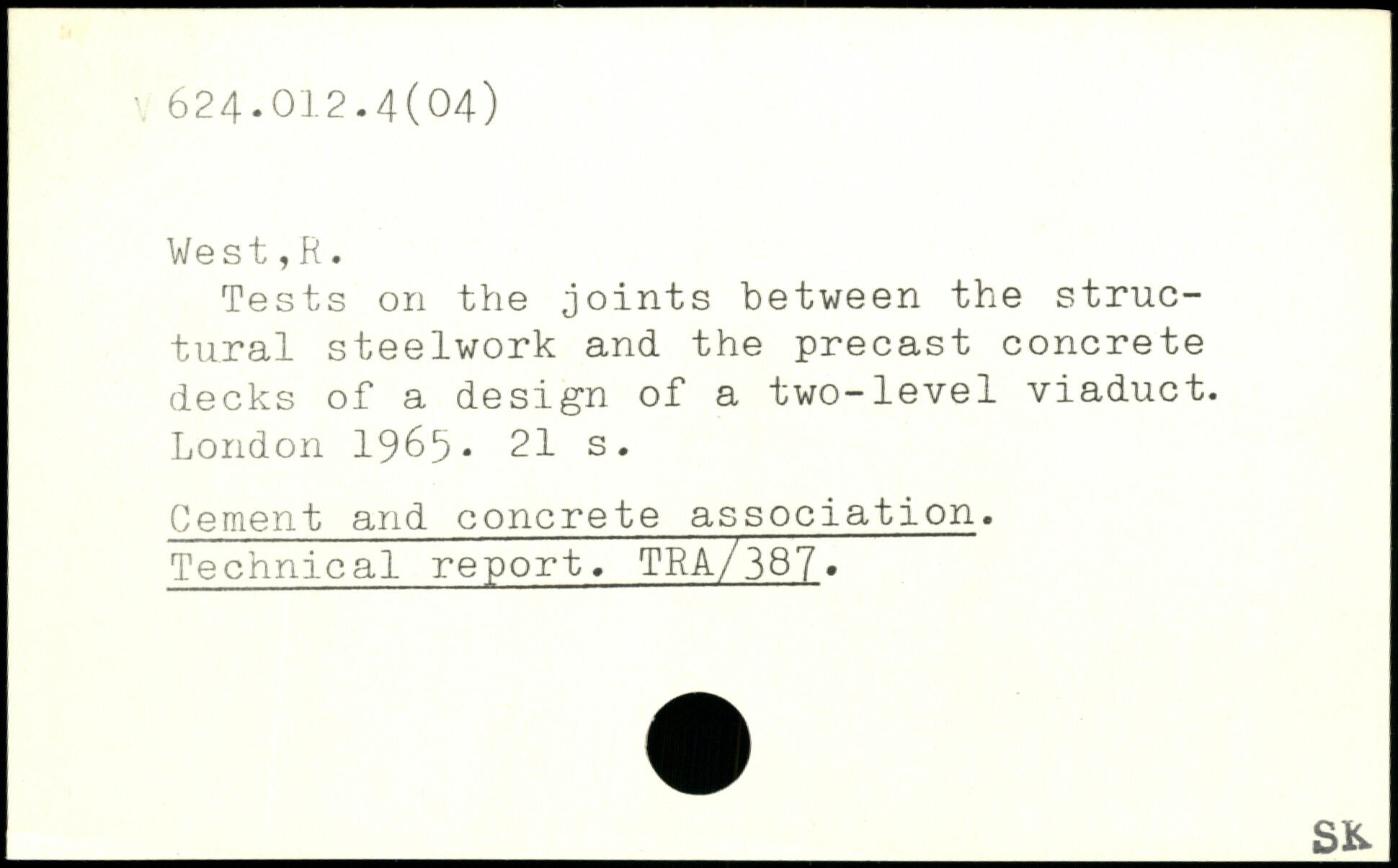 Tests on the joints between the structural steelwork and the precast concrete decks of a design of a two-level viaduct.