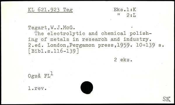 Tegart,W.J.McG. The electrolytic and chemical polishing of metals in research and industry.