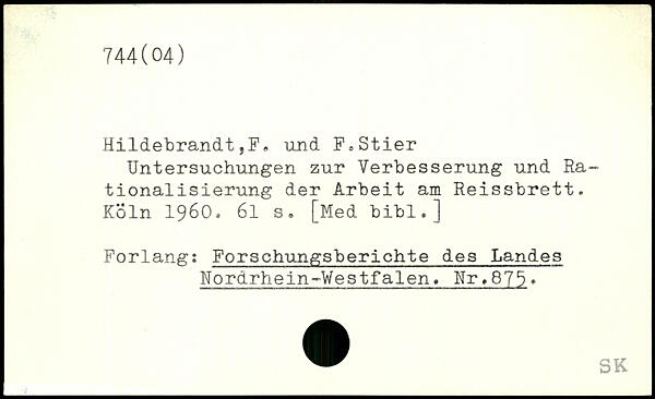 Hildebrandt,F. und F,Stier Untersuchungen zur Verbesserung und Rationalisierung der Arbeit am Reissbrett.