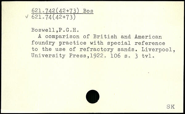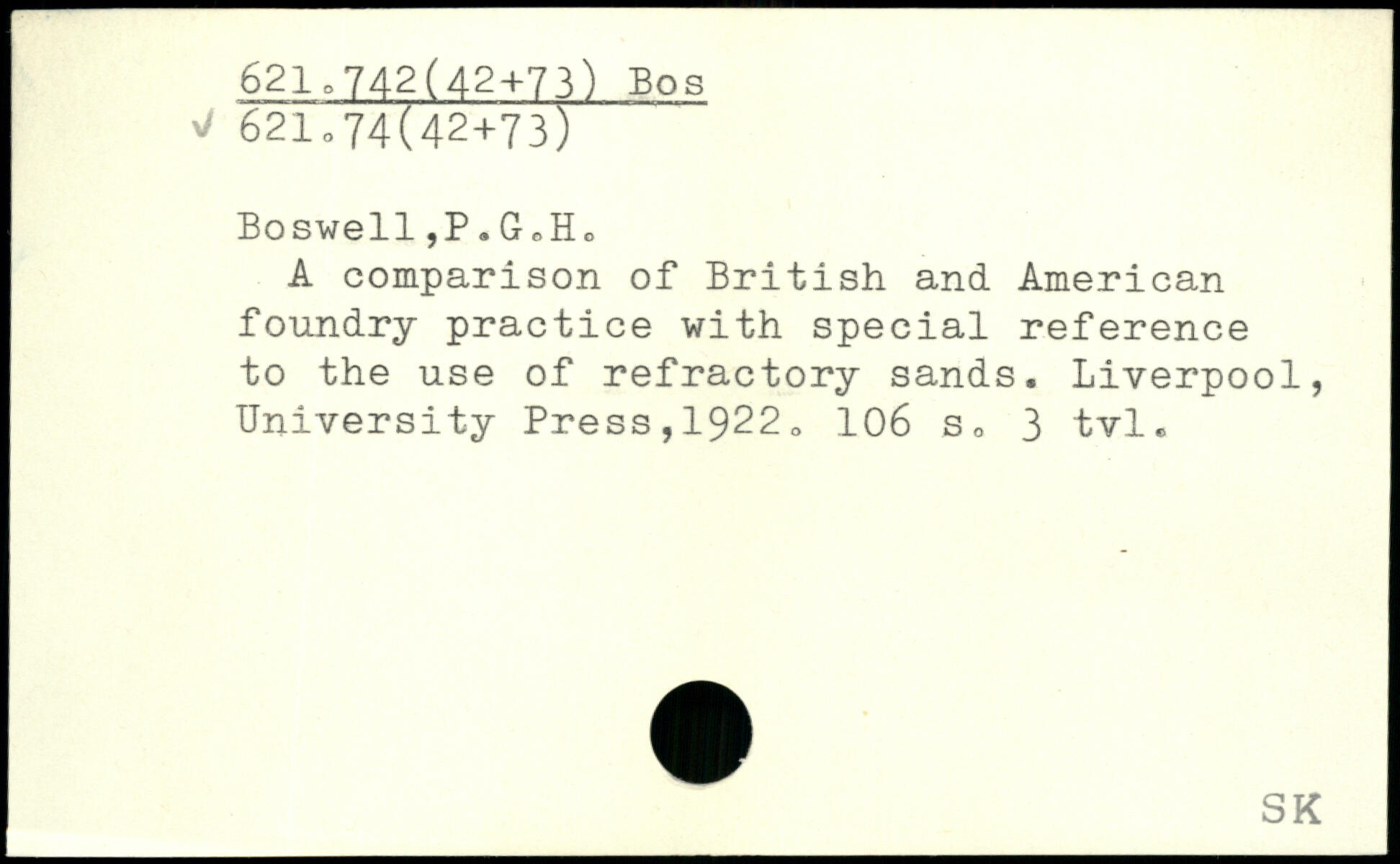 A comparison of British and American foundry practice with special reference to the use of refractory sands.