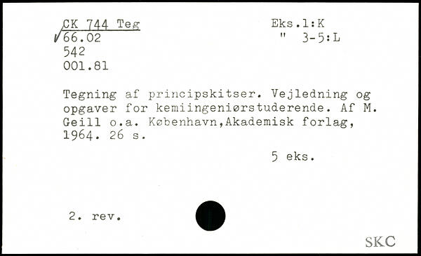 Tegning af principskitser. Vejledning og opgaver for kemiingeniørstuderende. Af M. Geill o.a.