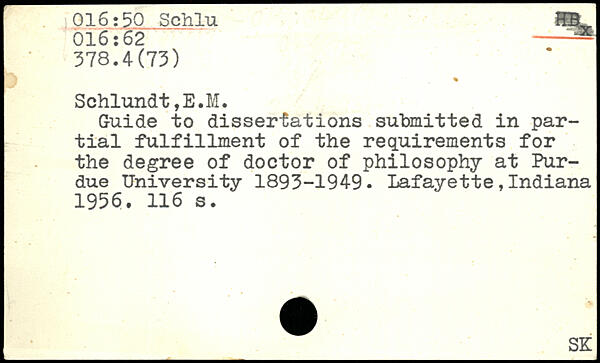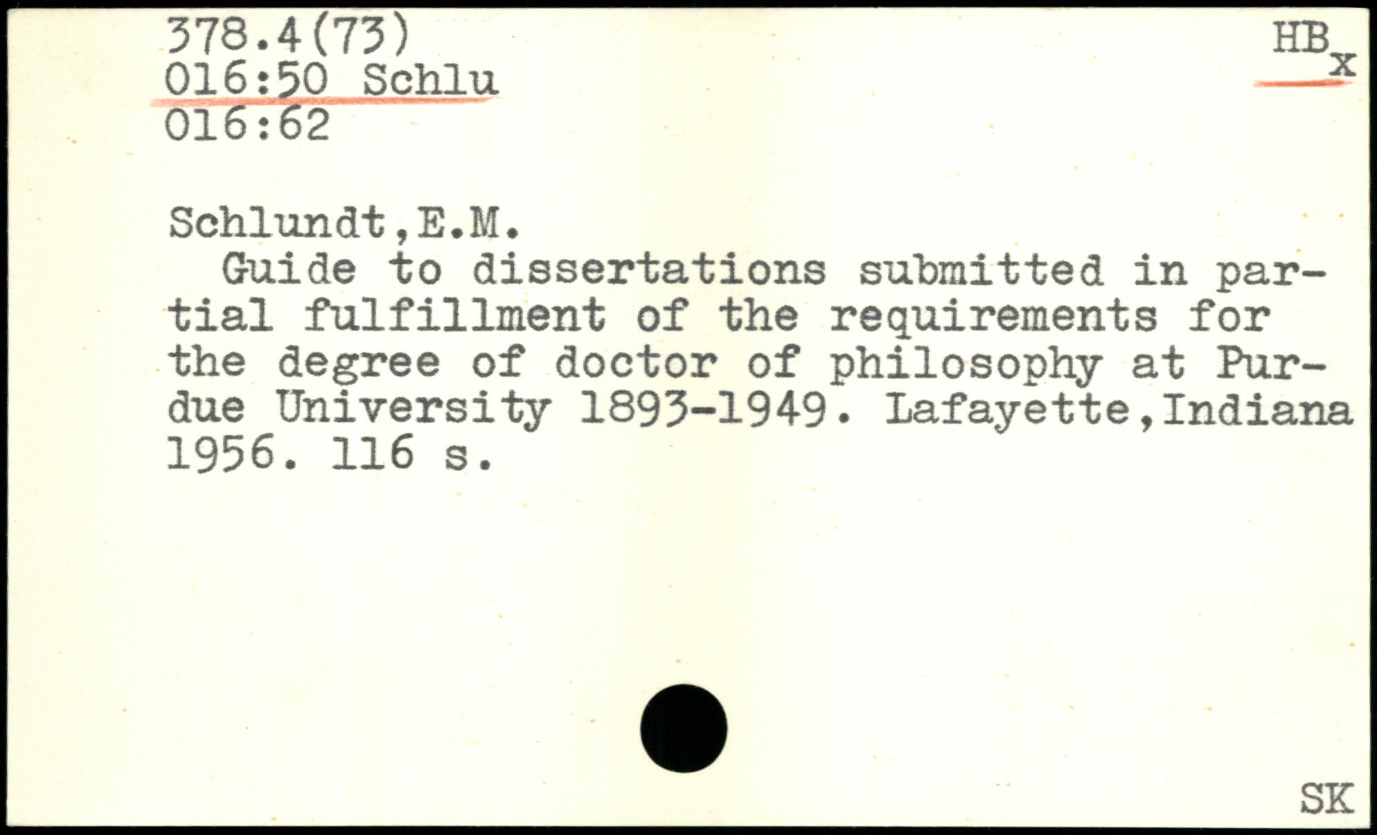 Guide to dissertations submitted in partial fulfillment of the requirements for the degree of doctor of philosophy at Purdue University 1893-1949. Lafayette,Indiana 1956.