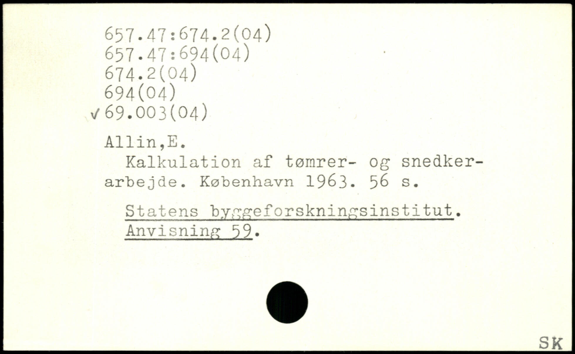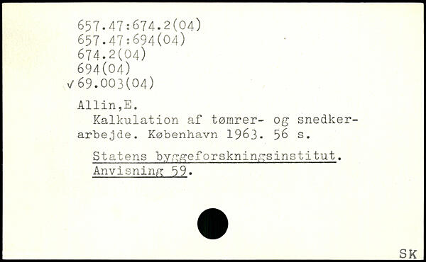 Kalkulation af tømrer- og snedkerarbejde. København 19&3. s. Statens byggeforskningsinstitut. Anvisning 59. _IK