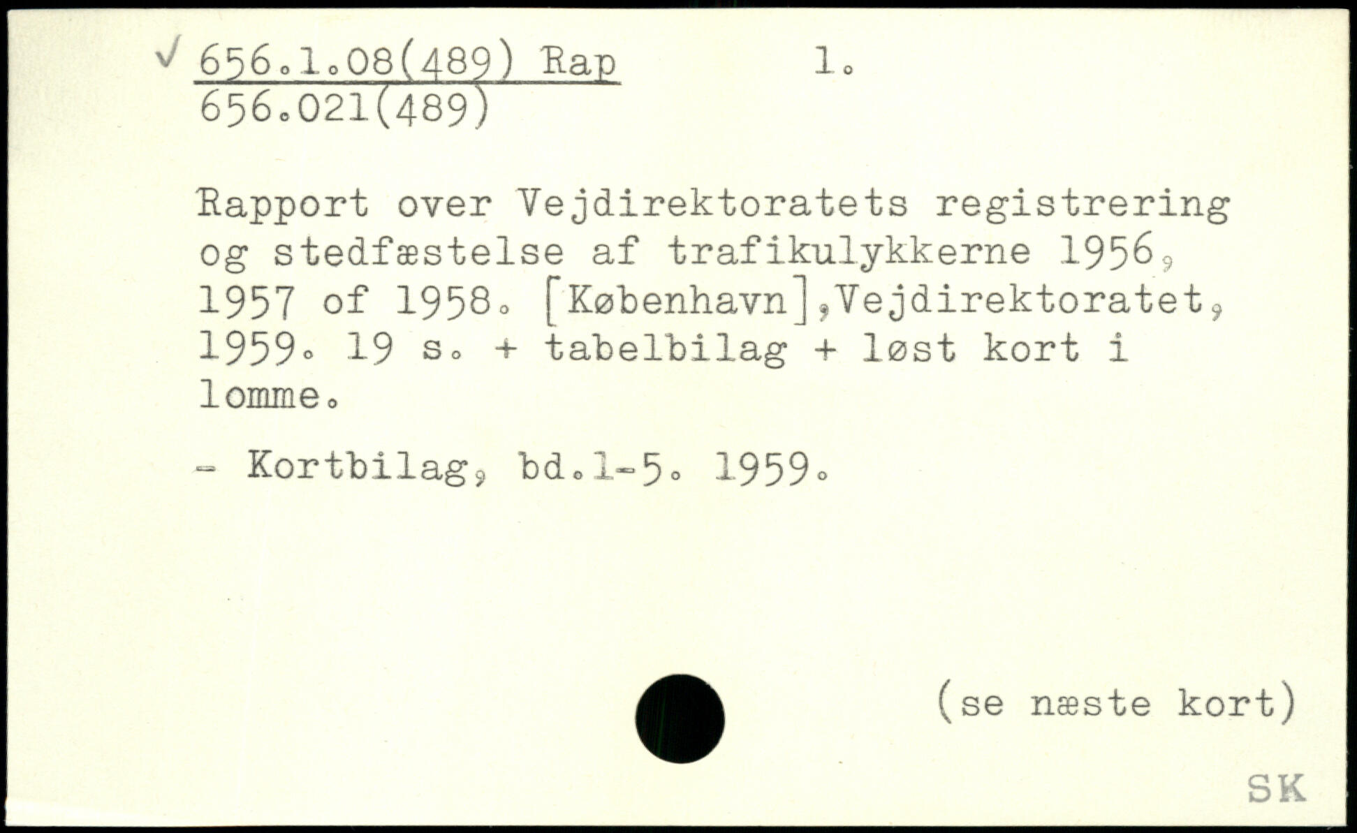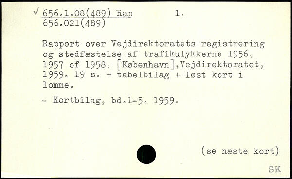 Kapport over Vejdirektoratets registrering og stedfæstelse af trafikulykkerne 19569 1957 of 1958o [København]^Vejdirektoratet, 1959.