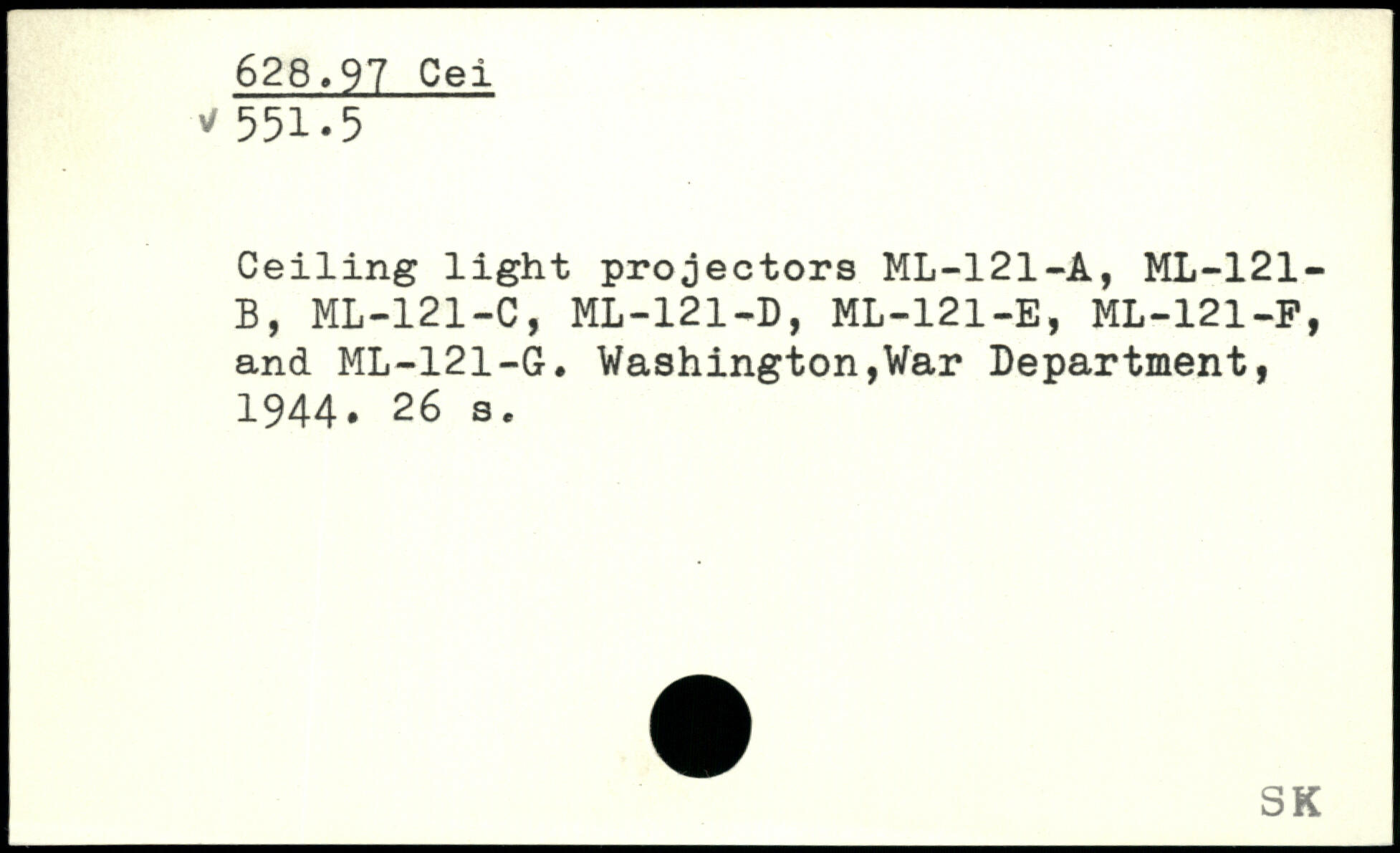 Ceiling light projectors ML-121-A, ML-121-B, ML-121-C, ML-121-D, ML-121-E, ML-121-F, and ML-121-G.