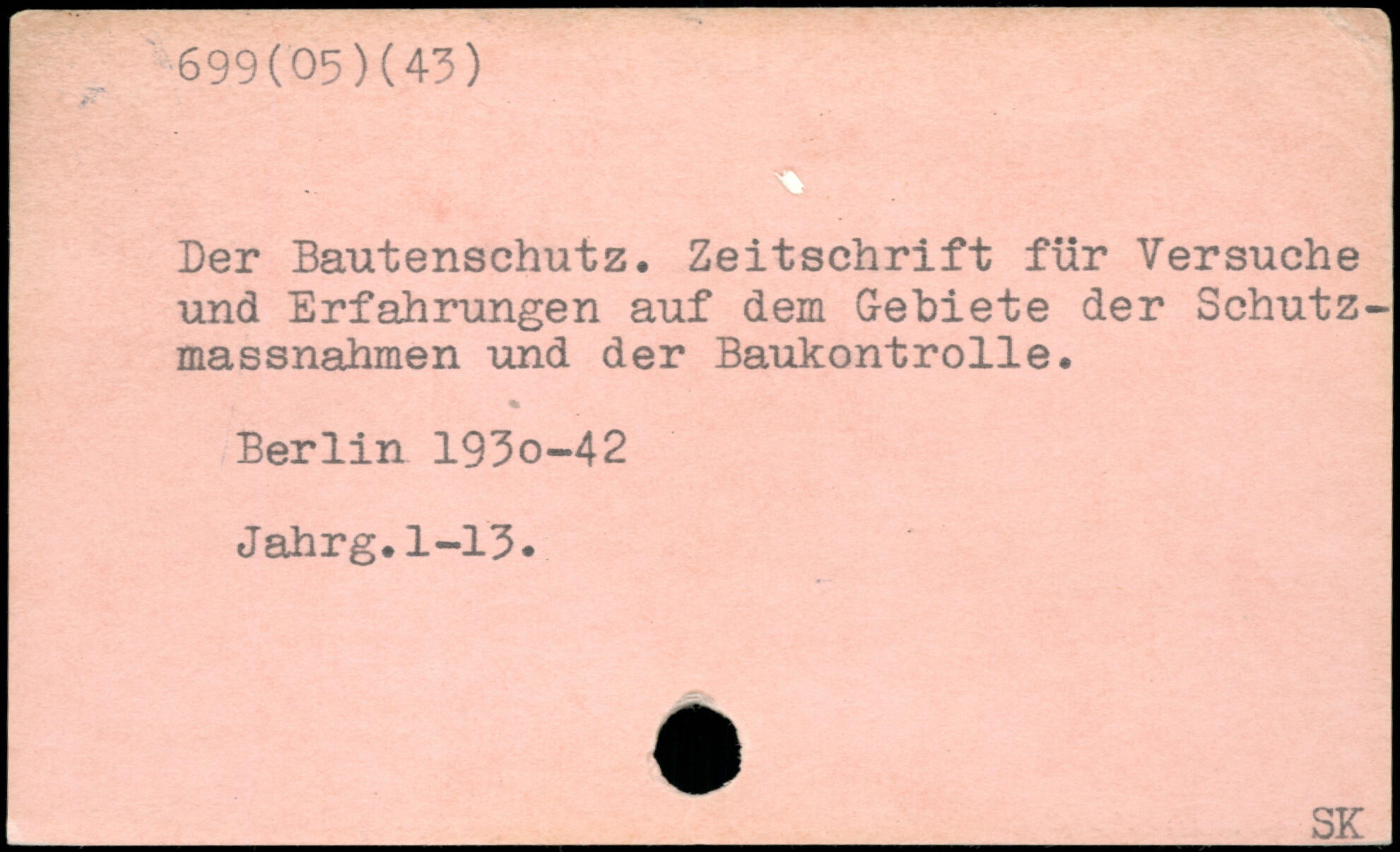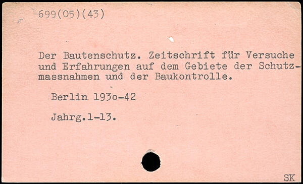 Der Bautenschutz. Zeitschrift für Versuche und Erfahrungen auf dem Gebiete der Schutzmassnahmen und der Baukontrolle. Berlin 193o-42 Jahrg.1-13.