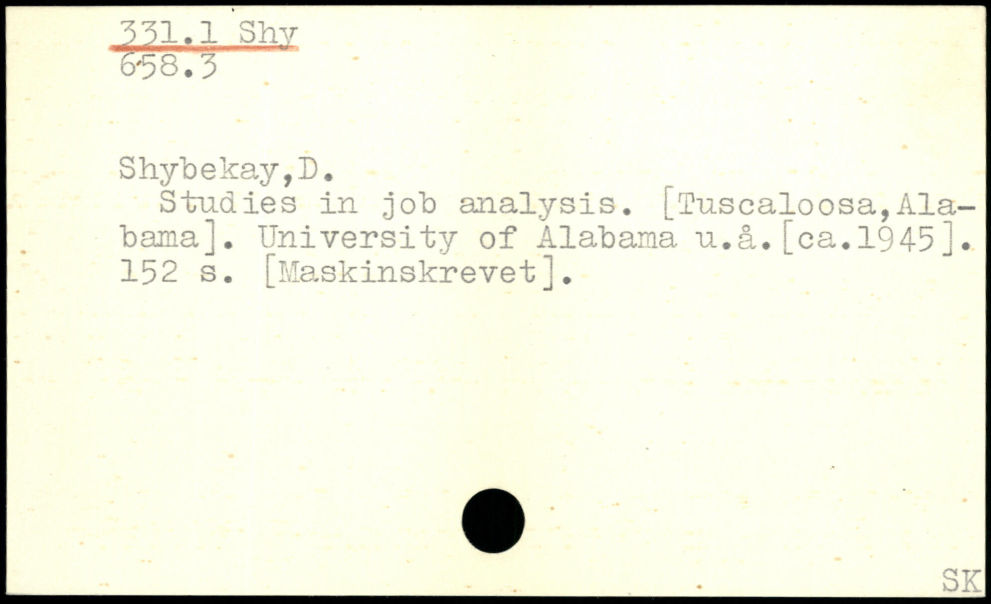 Studies in job analysis. [Tuscaloosa,Alabama]. University of Alabama u.å. [ca. 194-5].