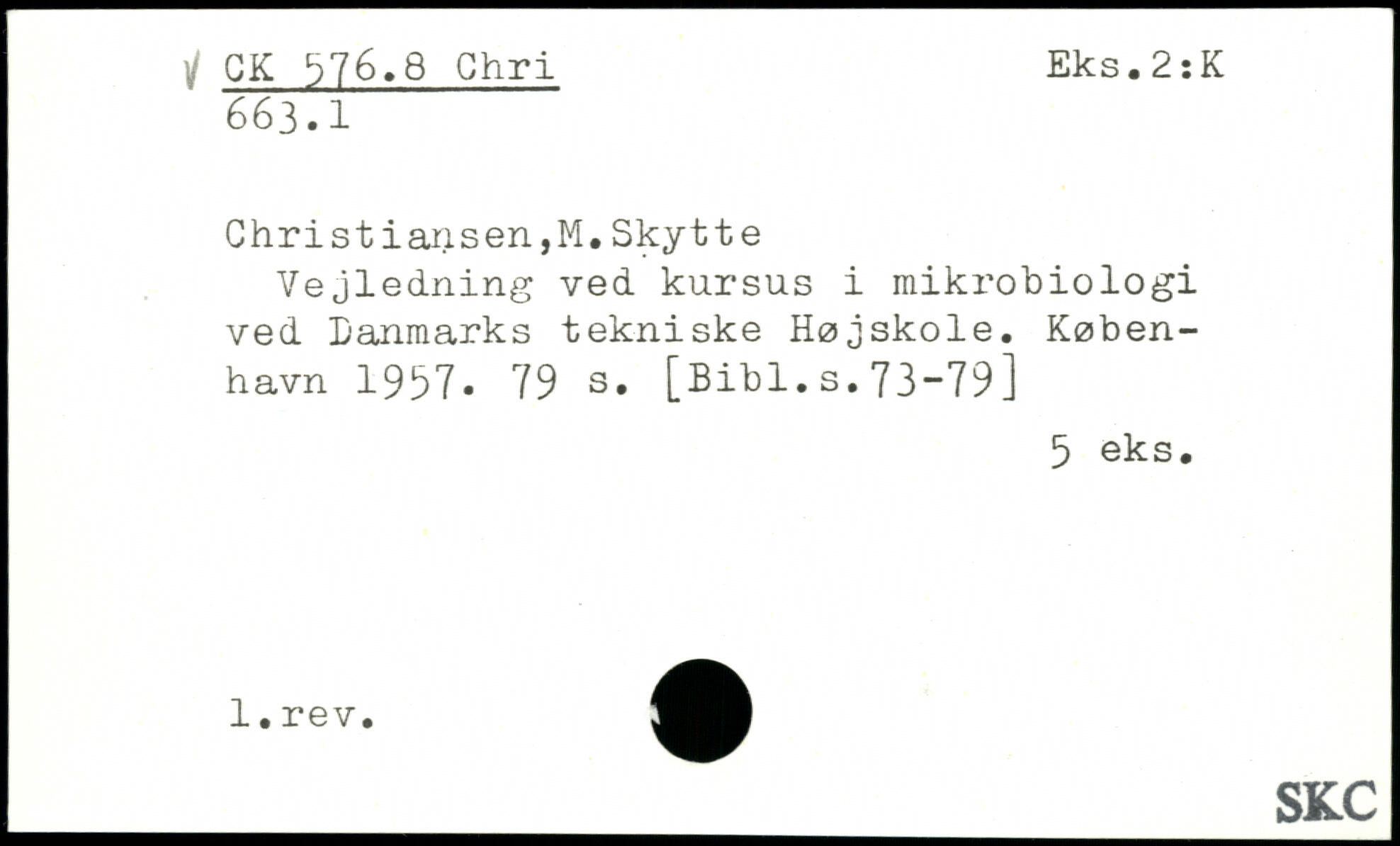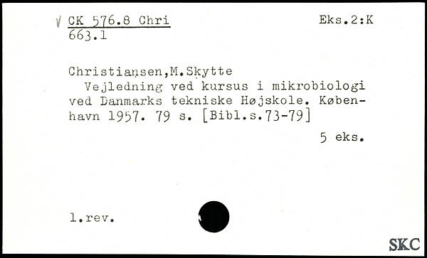 Christiansen,M.Skytte Vejledning ved kursus i mikrobiologi ved Danmarks tekniske Højskole.
