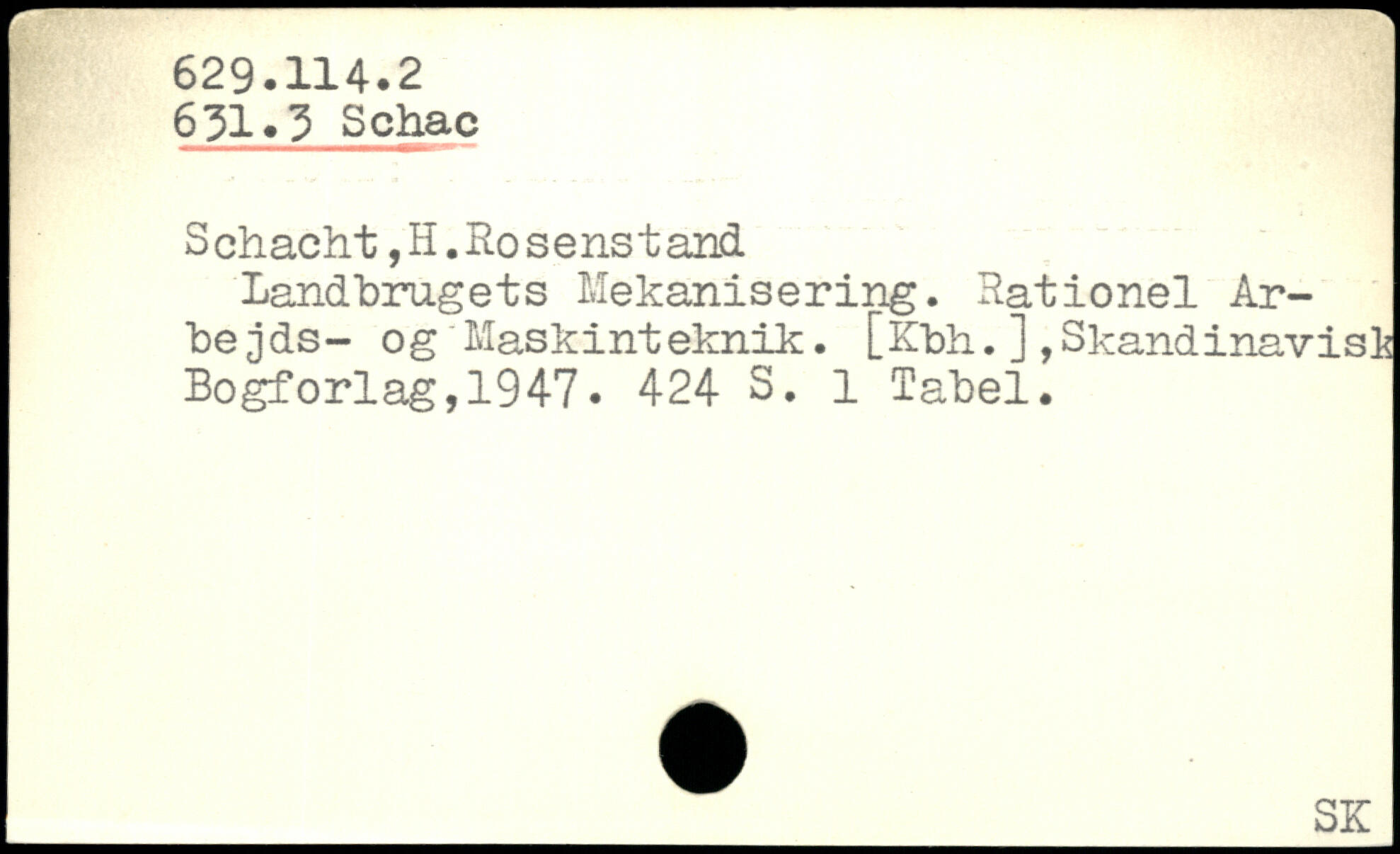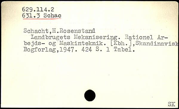 Schacht,H.Rosenstand Landbrugets Mekanisering. Rationel Arbe jds- og Maskinteknik.