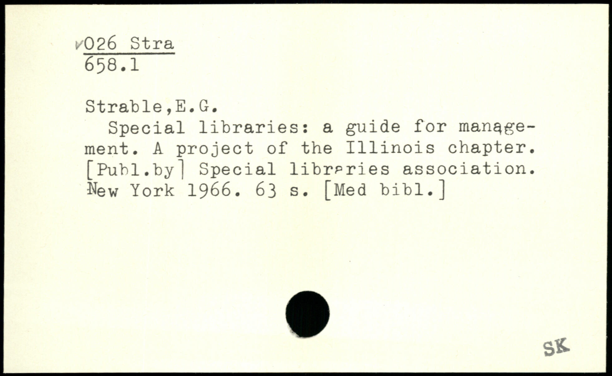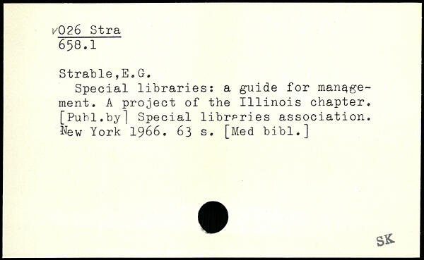 Special libraries: a guide for management. A project of the 1111nois chapter. [Puhl.by] Special librpries association.