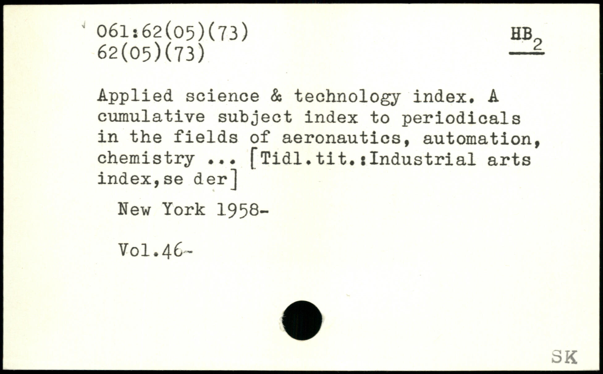 Applied science & technology index. A cumulative subject index to periodicals in the fields of aeronautics, automation, chemistry ...