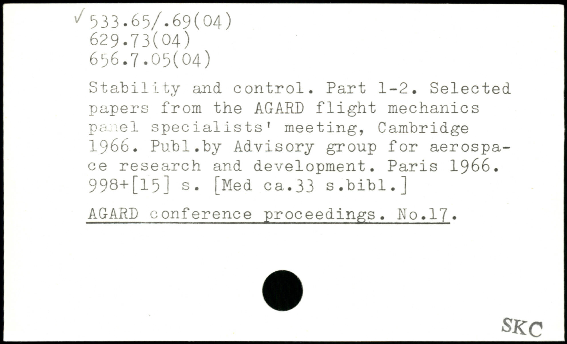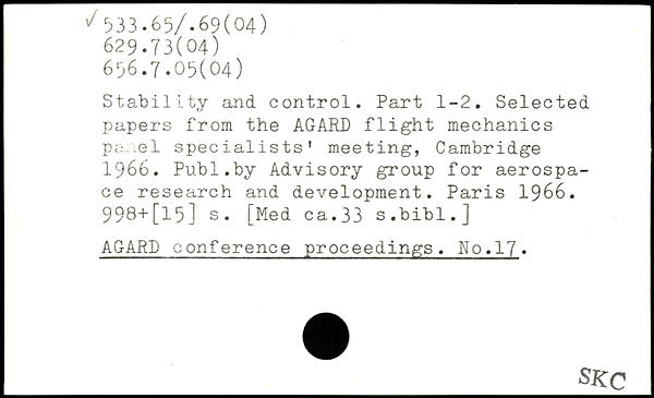 Stability and control. Part 1-2. Selected papers from the AGARD flight mechanics panel specialists' meeting