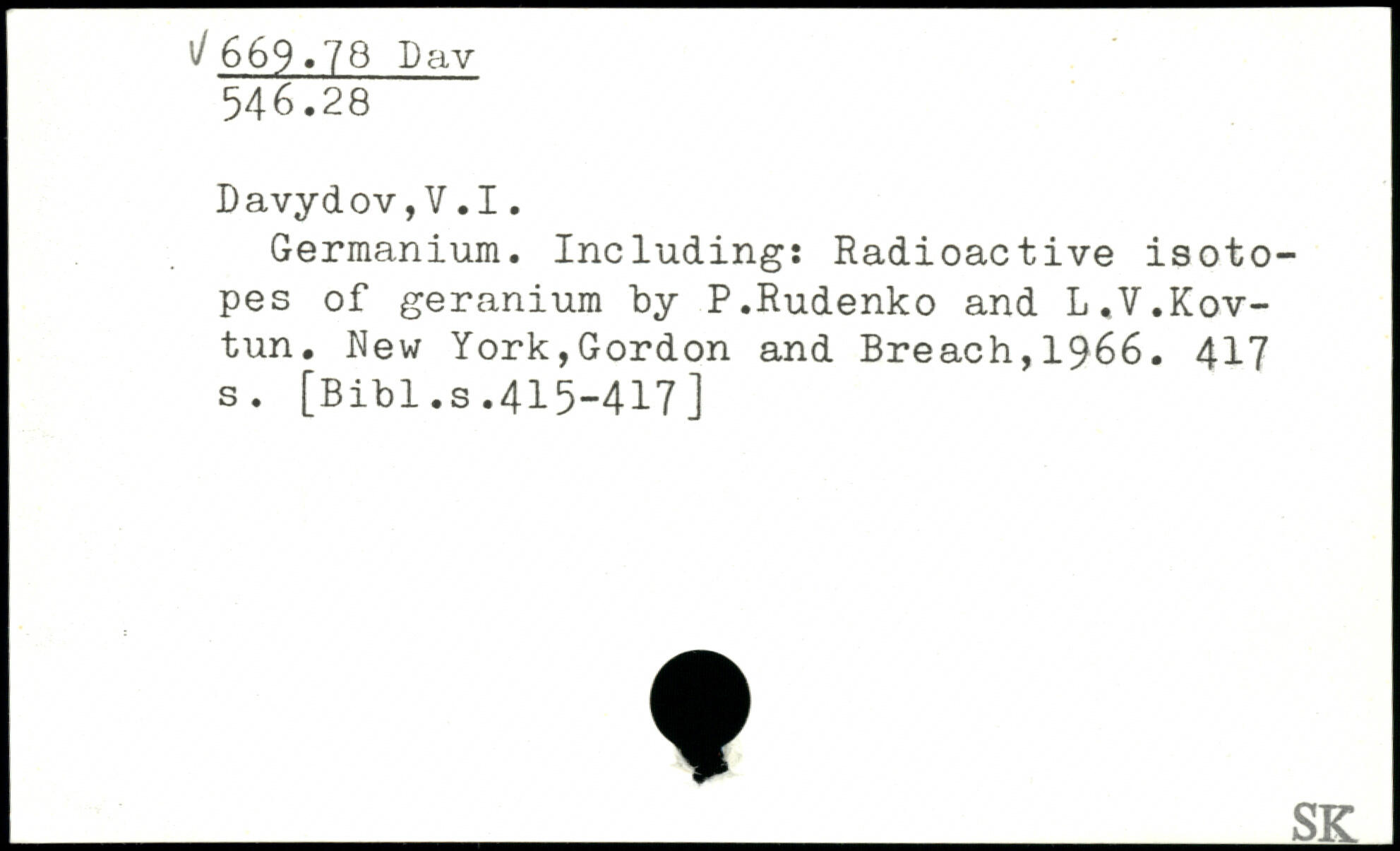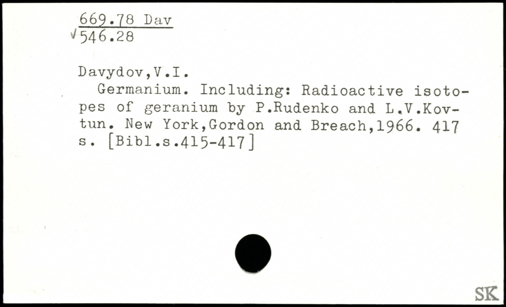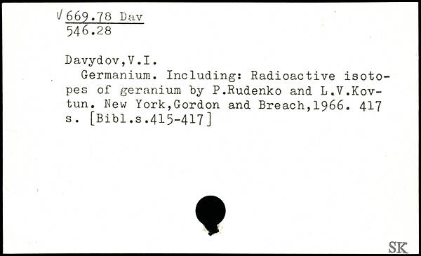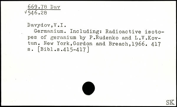 Germanium. Including: Radioactive isotopes of geranium by P.Rudenko and L.V.Kov-tun.