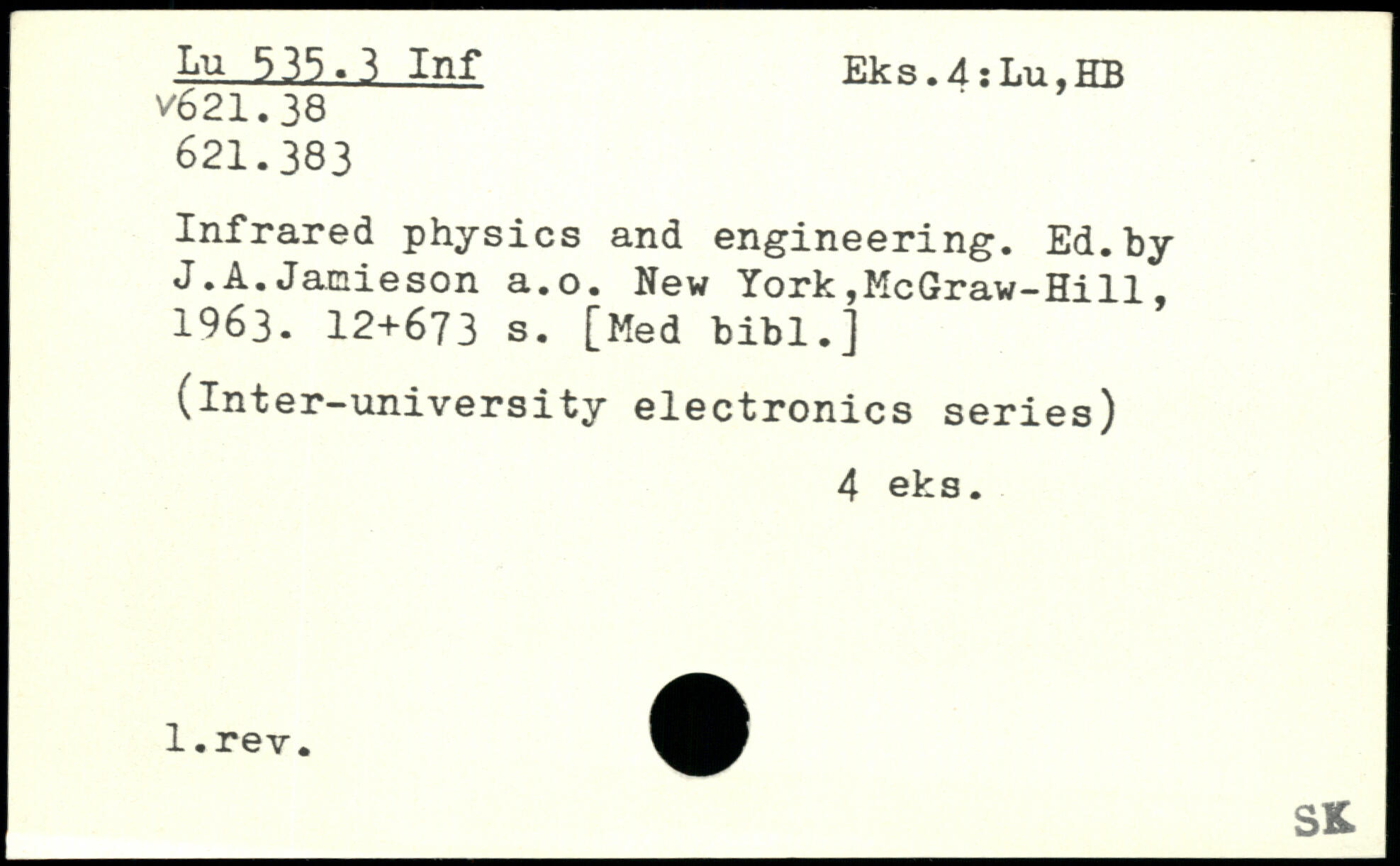 Infrared physics and engineering. Ed. by J.A.Jamieson a.o.