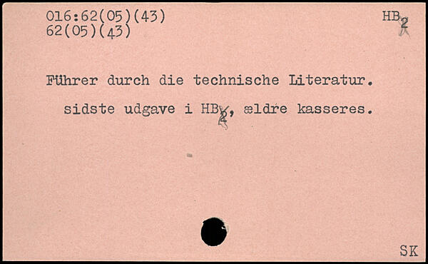 Führer durch die technische Literatur, sidste udgave i HBj^, ældre kasseres.