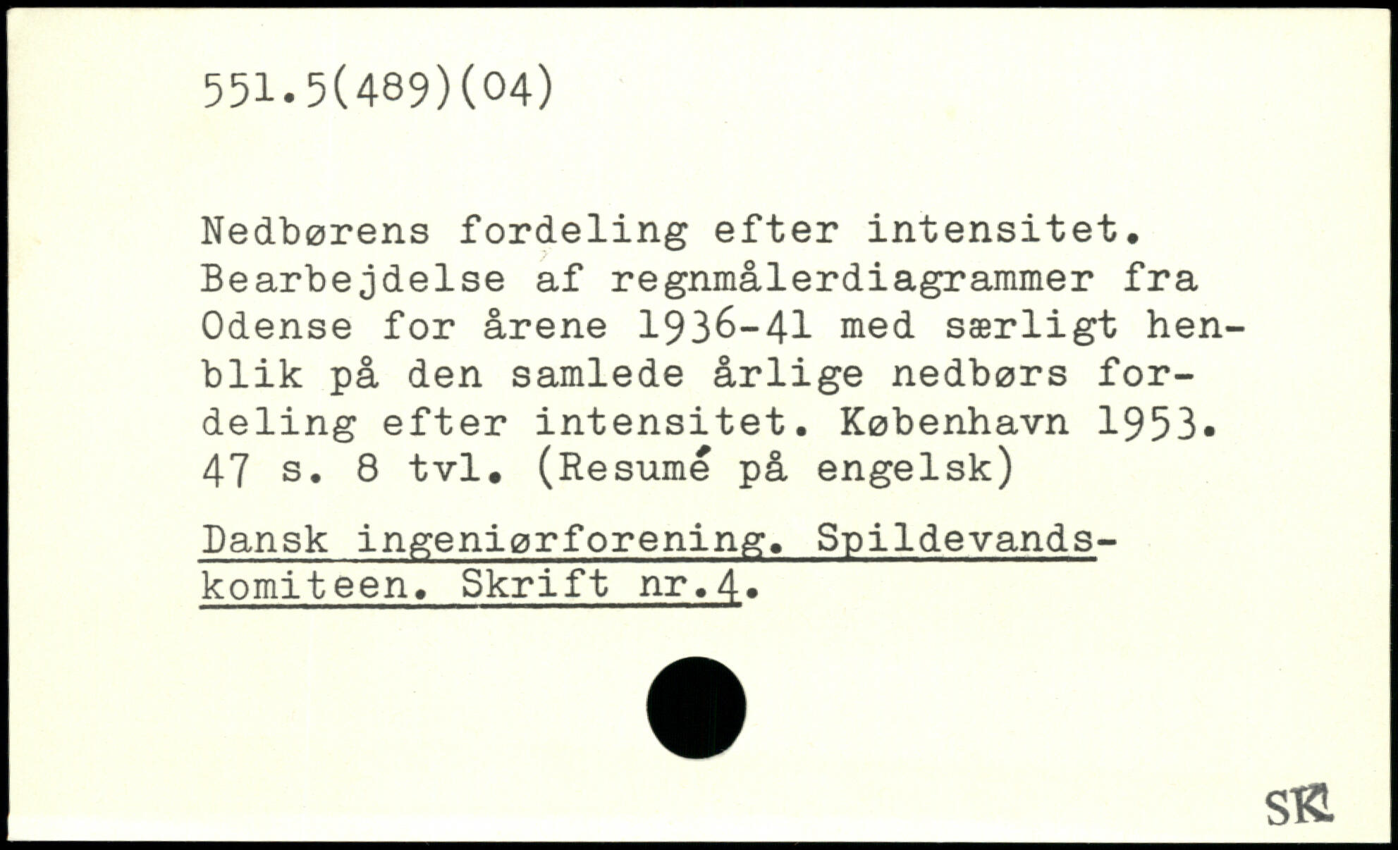 Nedbørens fordeling efter intensitet. Bearbejdelse af regnmålerdiagrammer fra Odense for årene 1936-41 med særligt henblik på den samlede årlige nedbørs fordeling efter intensitet.