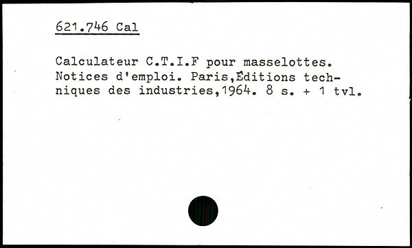 Calculateur C.T.I.F pour masselottes. Notices d'emploi. Paris,Ëditions techniques des industries,196^.