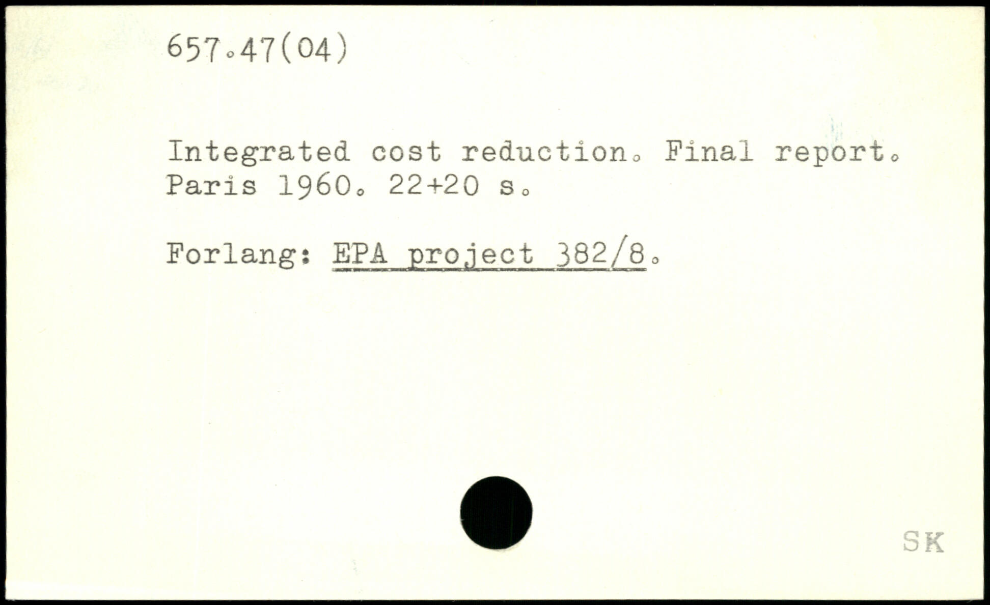 Integrated, cost reduction, Final report