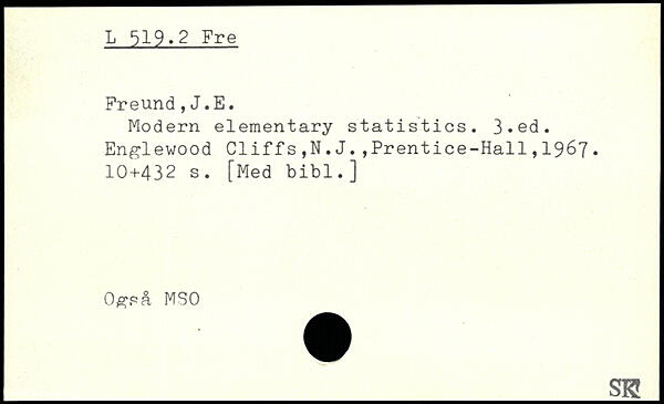 Modern elementary statistics.