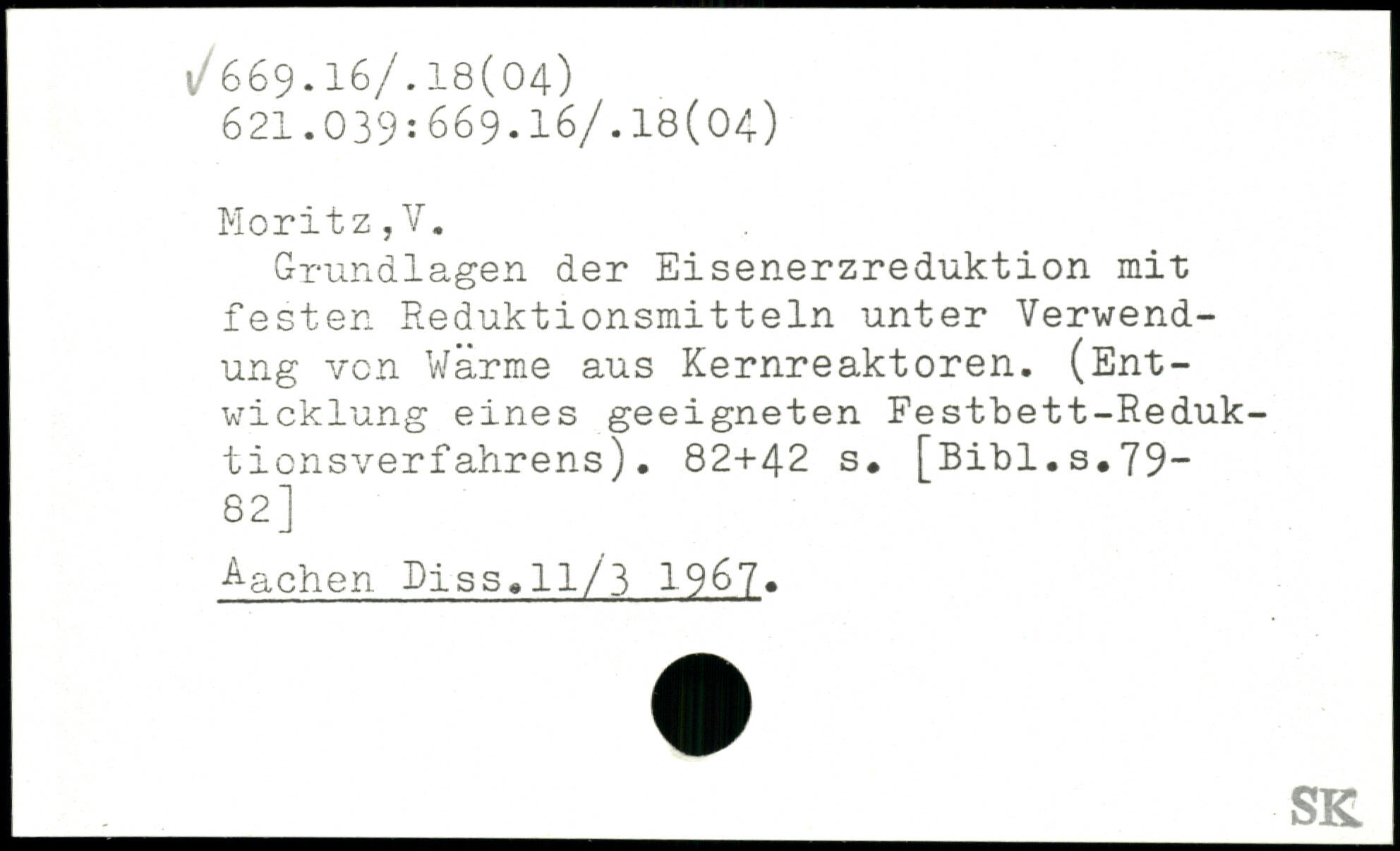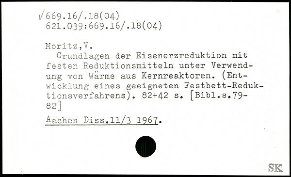 Grundlagen der Eisenerzreduktion mit festen Reduktionsmitteln unter Verwendung von Warme aus Kernreaktoren. (Entwicklung eines geeigneten Festbett-Reduktionsverfahrens)
