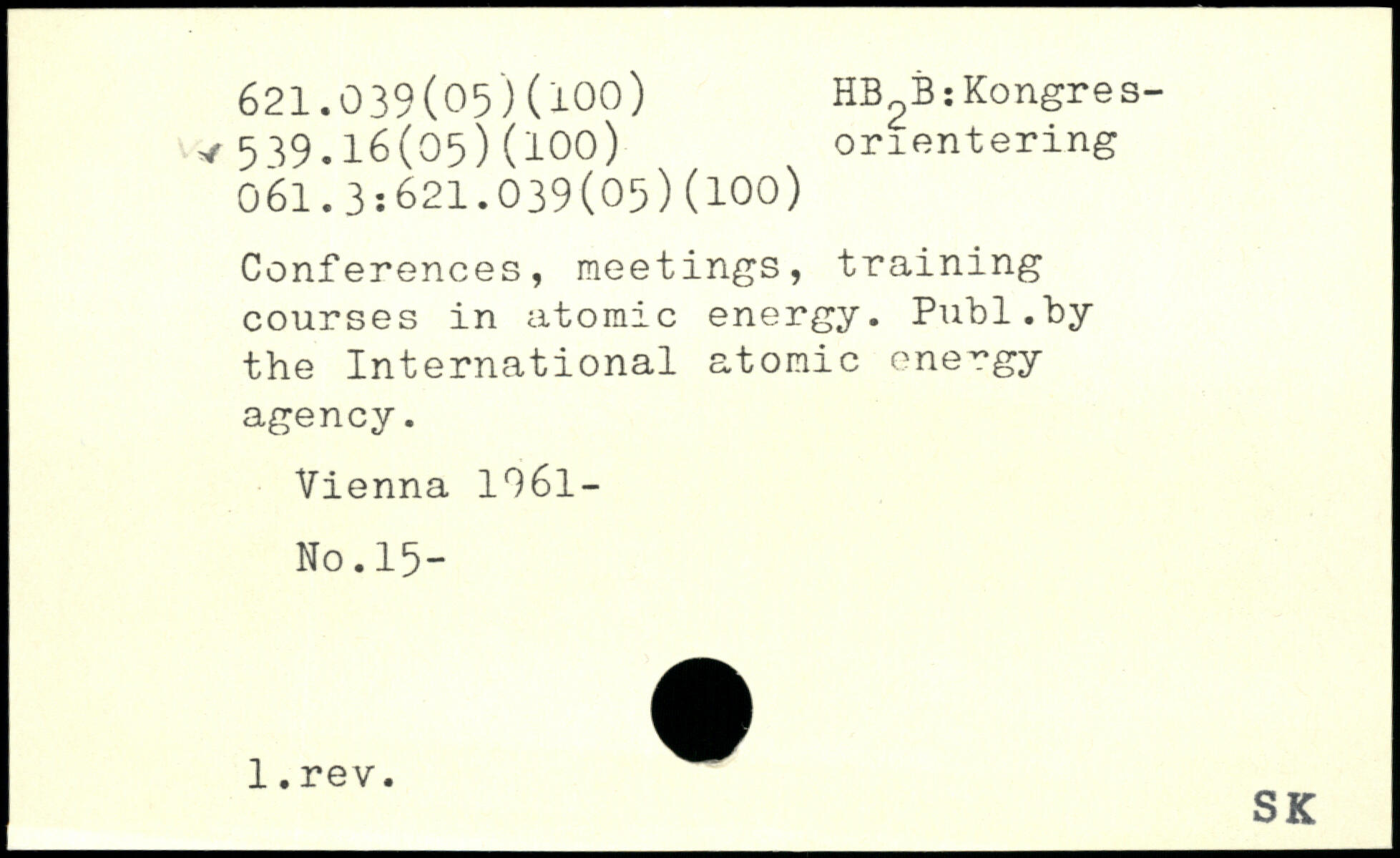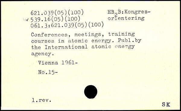 Conferences, meetings, training courses in atomic energy.