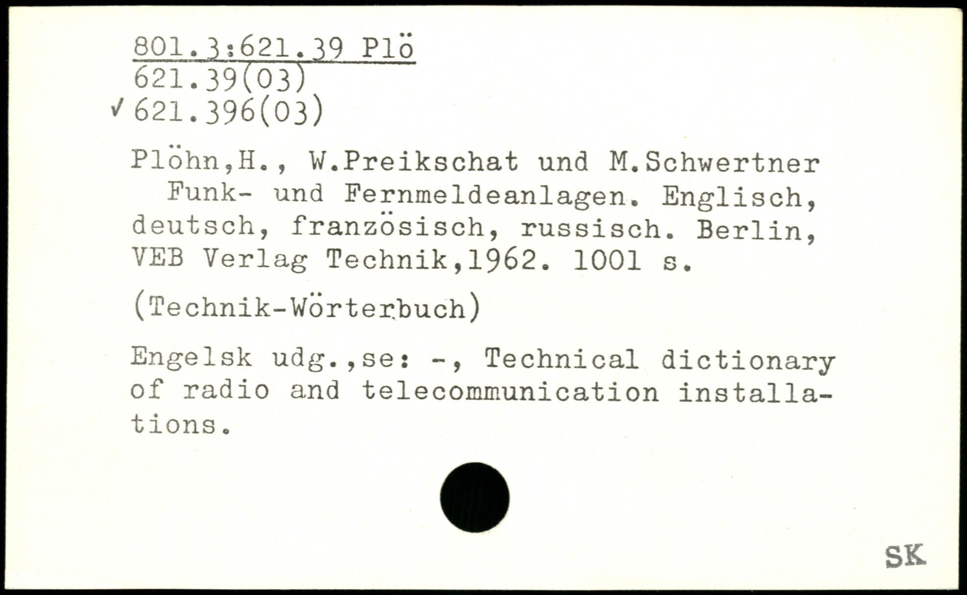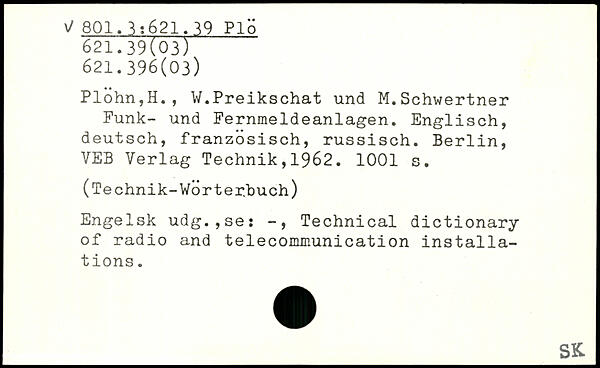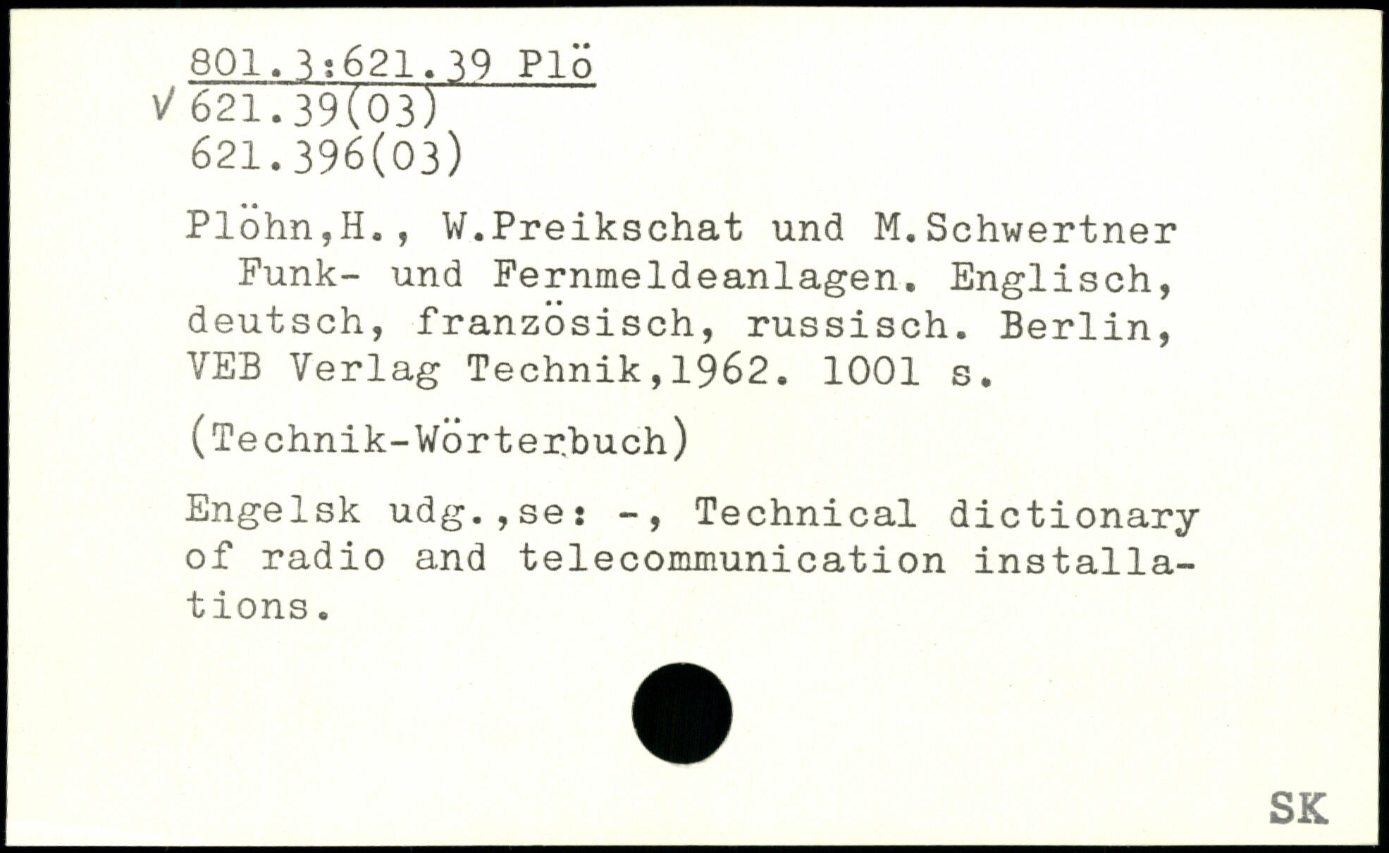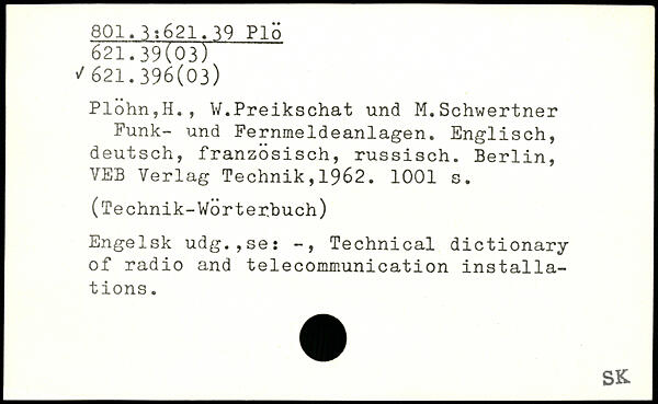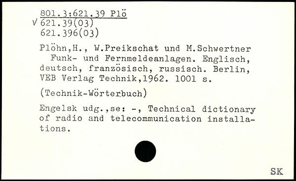 Plöhn,H., W.Preikschat und M.Schwertner Funk- und Fernmeldeanlagen. Englisch, deutsch, französisch, russisch.