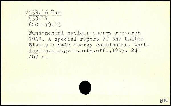 Fundamental nuclear energy research 1963. A special report of the United States atomic energy commission. Washington, U.S.gvmt.prtg.off.,1963. 24 +