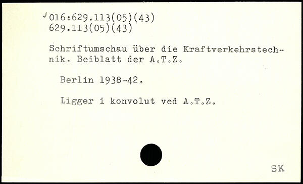 Schriftumschau über die Kraftverkehrstech-nik, Beiblatt der A,T0Z0