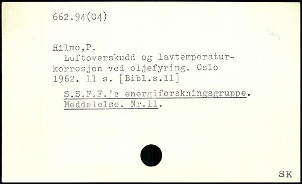 Luftoverskudd og lavtemperatur-korrosjon ved oljefyring. Oslo 1962.