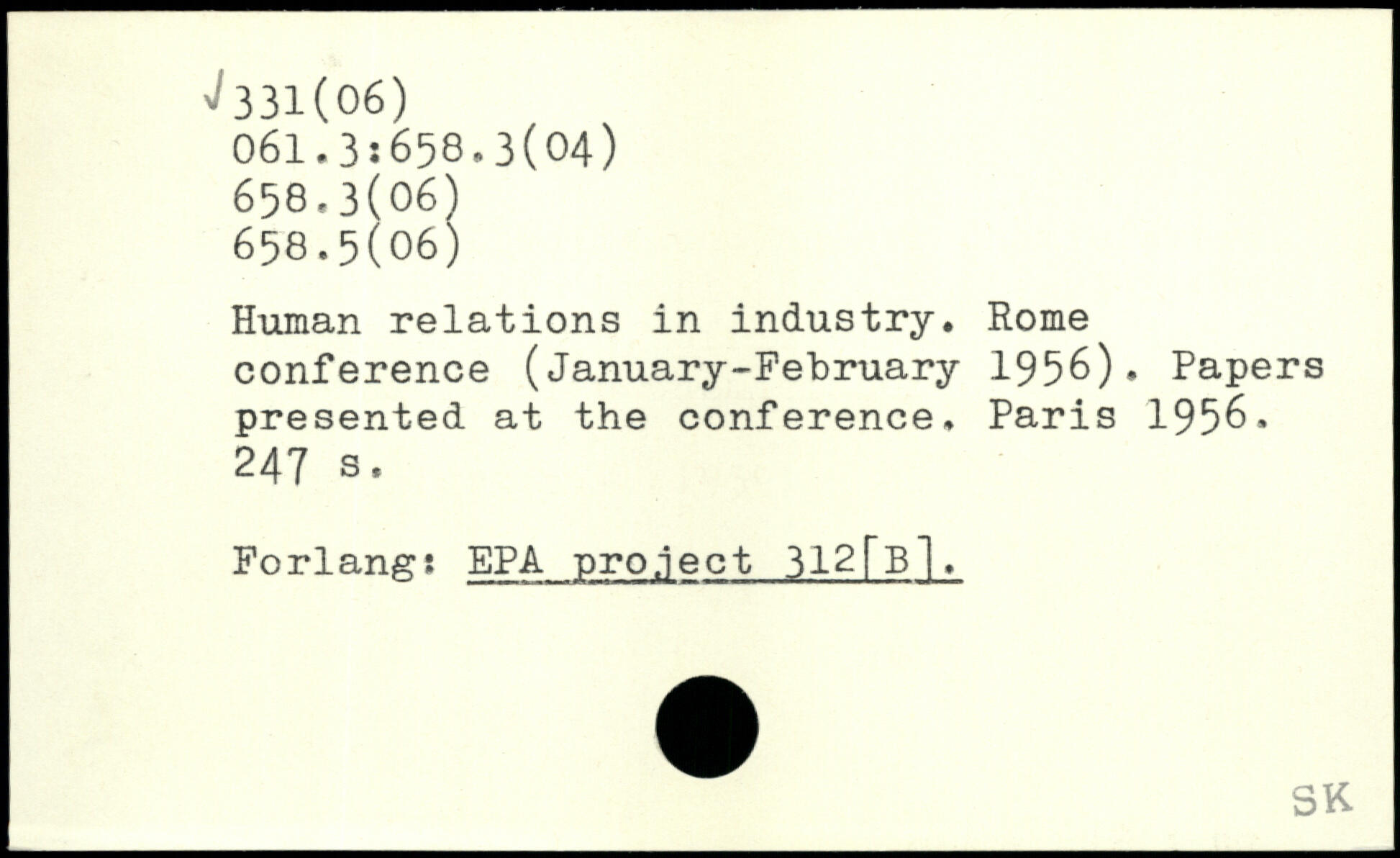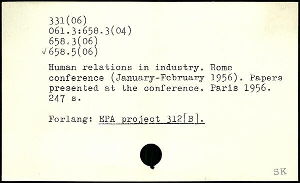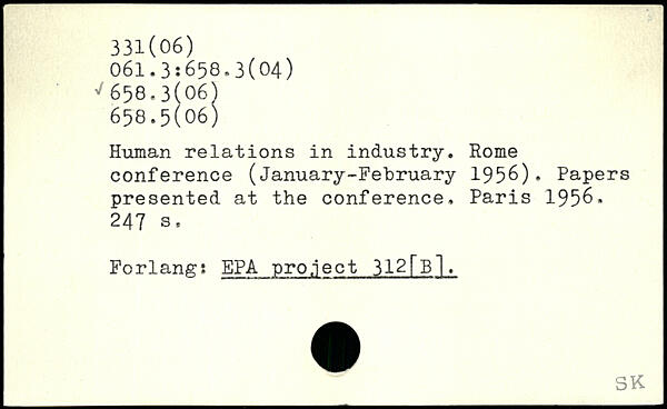 Human relations in industry. Rome conference (January-February 1956). Papers presented at the conference.