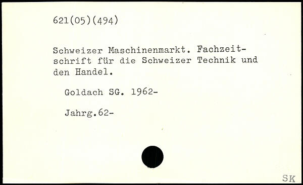 Schweizer Maschinenmarkt. Fachzeit-Schrift für die Schweizer Technik und den Handel. Goldach SG. 1962- Jahrg.62-