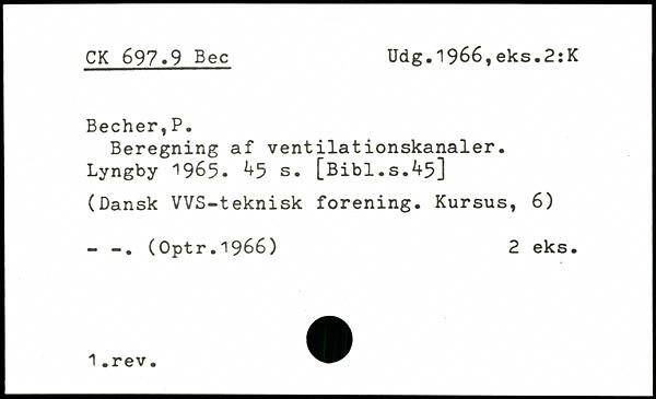 Beregning af ventilationskanaler, Lyngby 1965..
