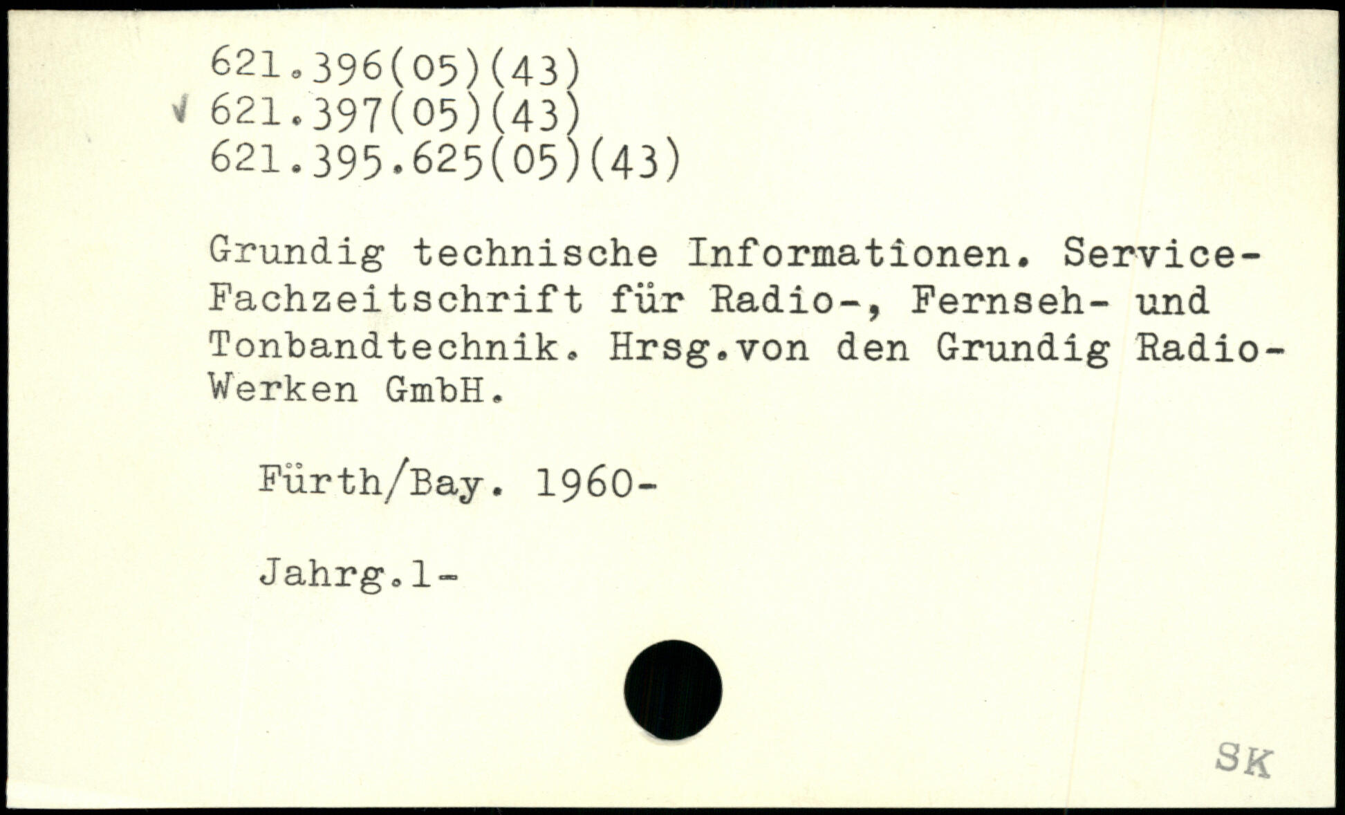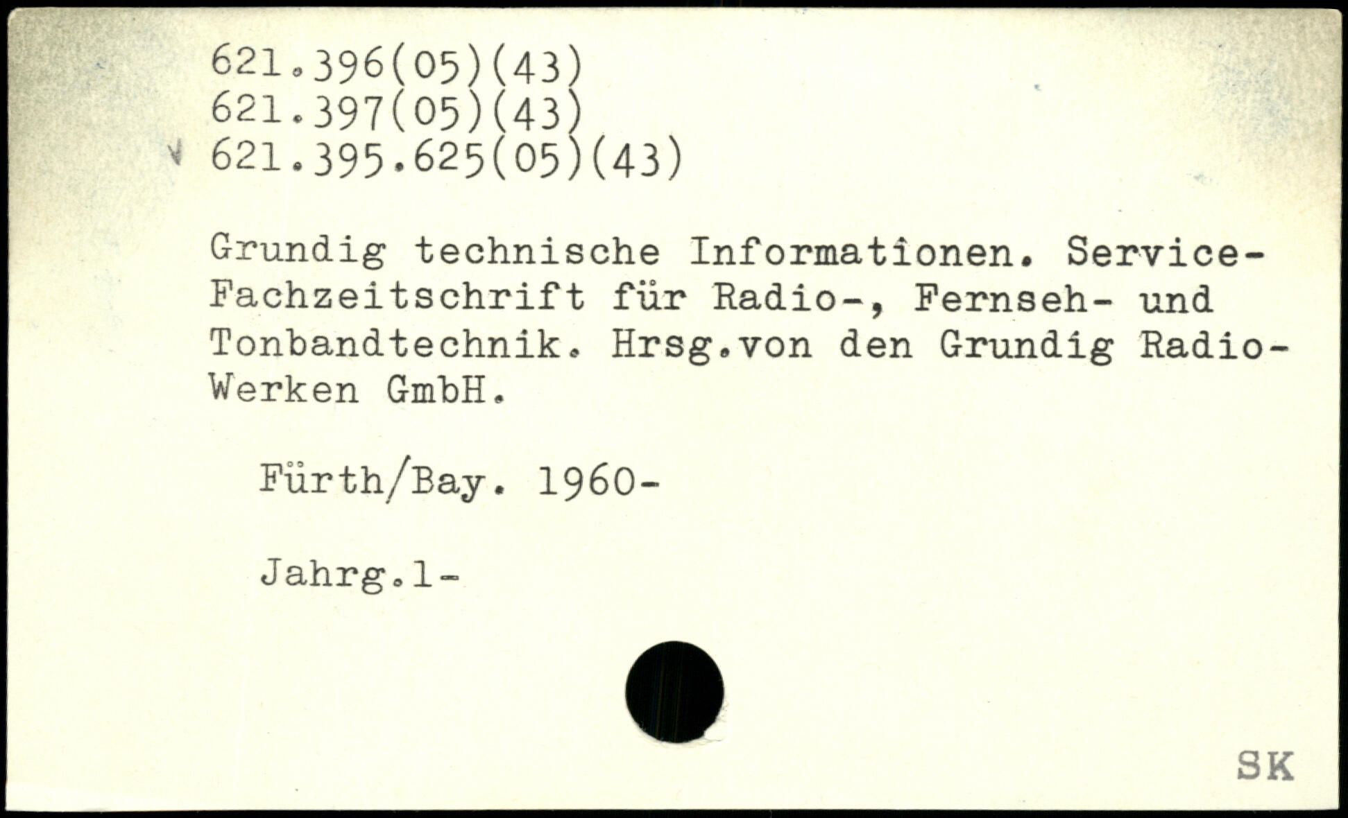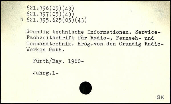 Grundig technische Informationen. Service-Fachzeitschrift für Radio-, Fernseh- und Tonbandtechnik. Hrsg.von den Grundig Radio-Werken GmbH. Fürth/Bay. 1960- Jahrg.l-