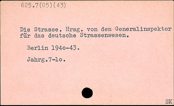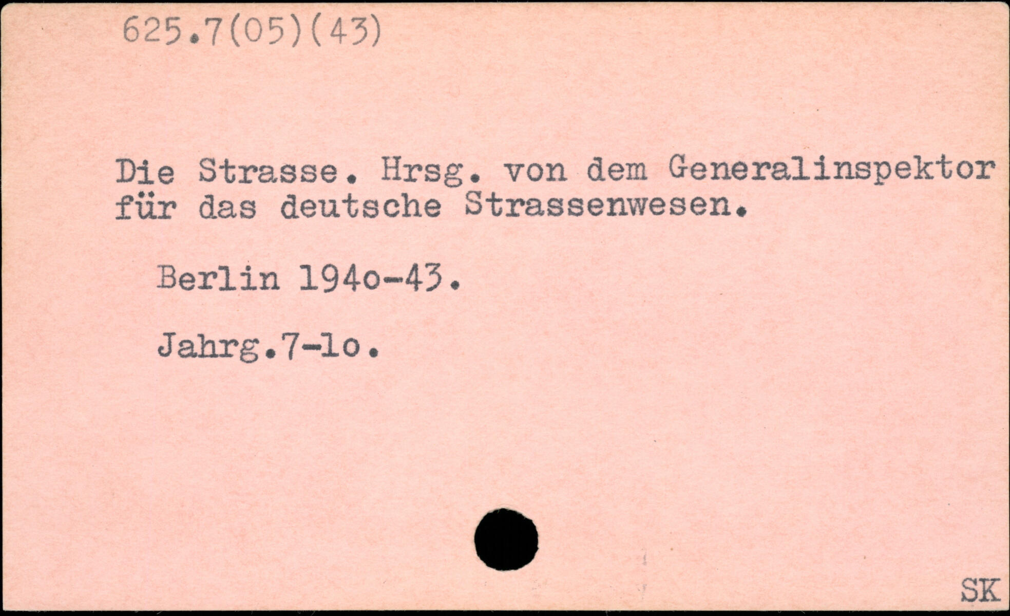 Die Strasse. Hrsg, von dem Generalinspektör für das deutsche Strassenwesen. Berlin 194-0-43. Jahrg.7-lo.