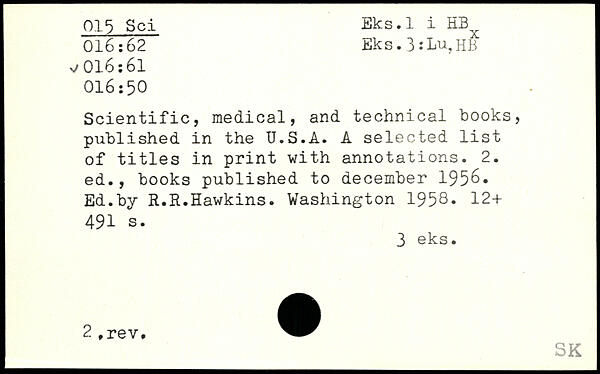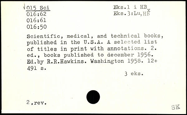 UDK: 015 Sci, 016:62, 016:61, 016:50
