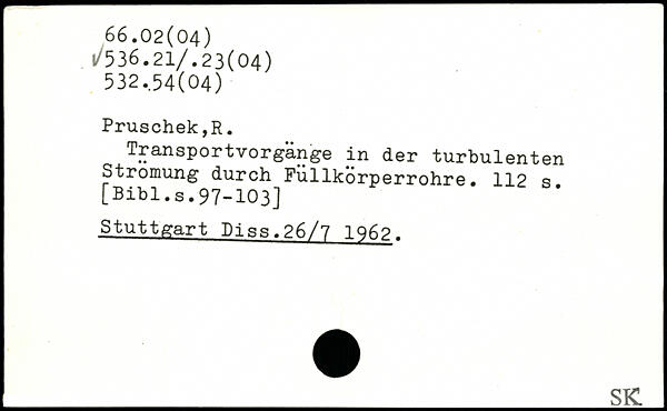 Transportvorgänge in der turbulenten Strömung durch Fullkörperrohre.