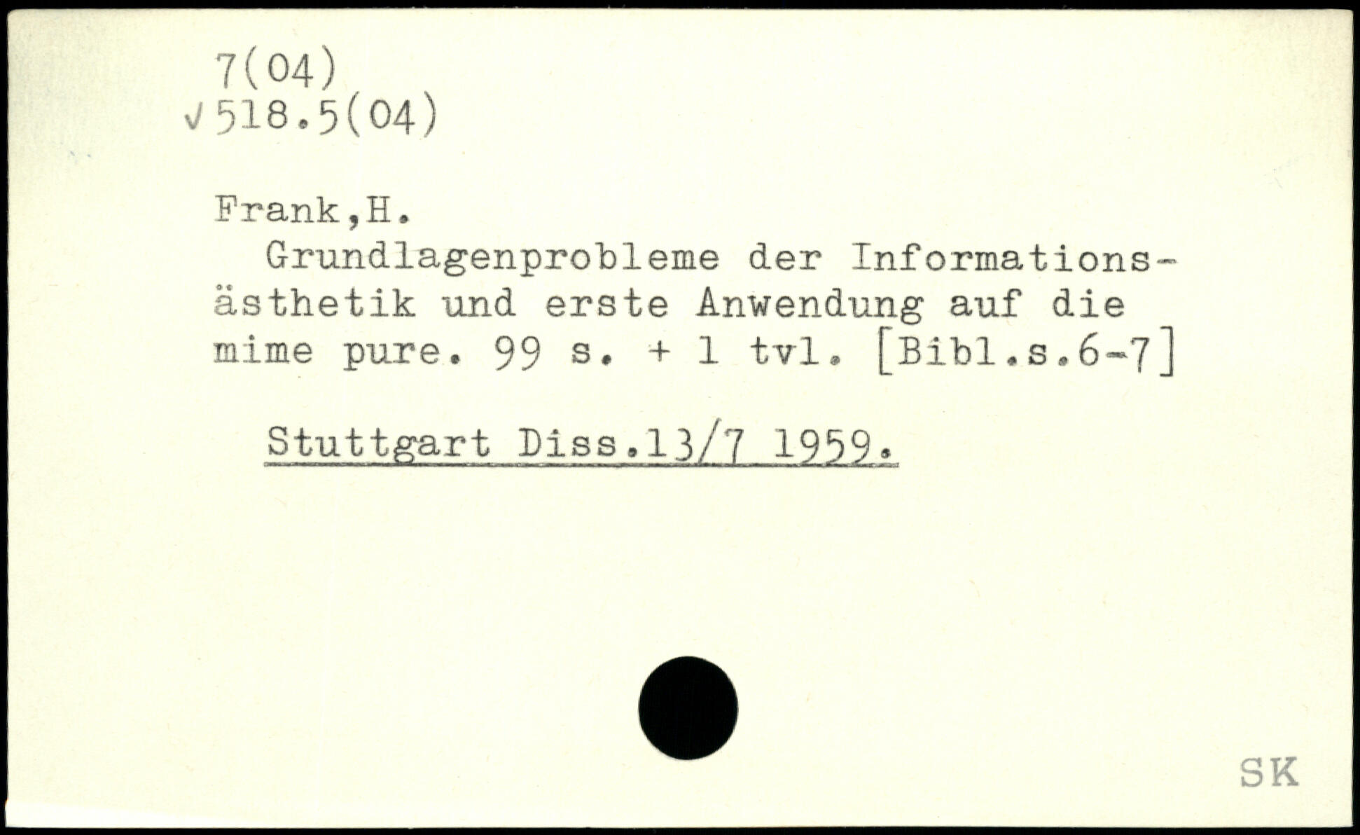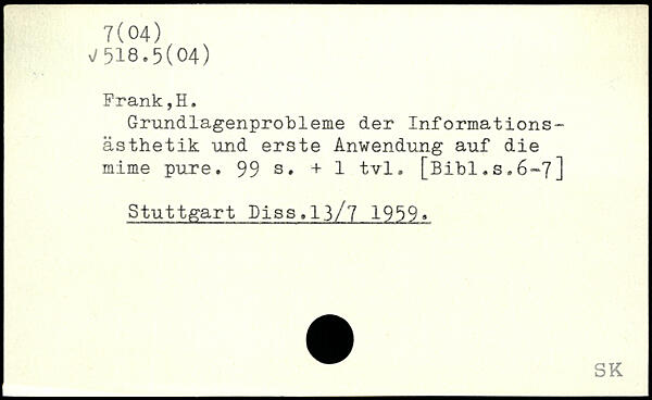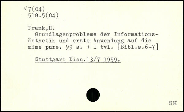 Grundlagenprobleme der Informationsästhetik und erste Anwendung auf die mime pure.