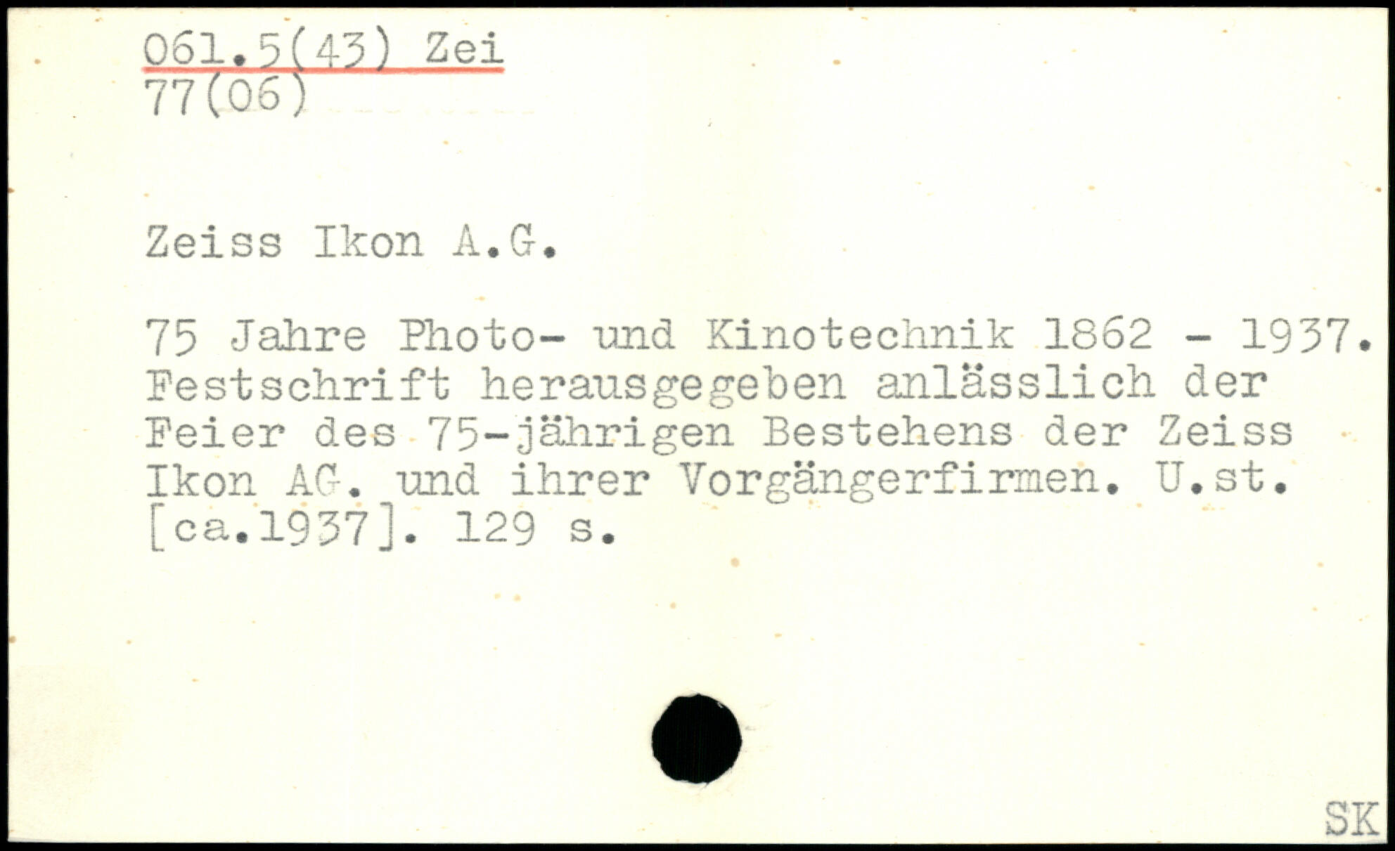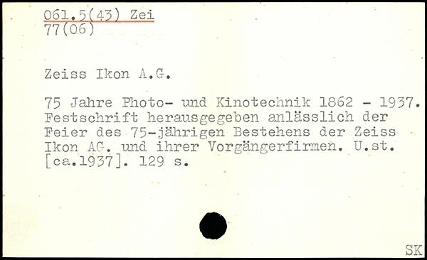 anlässlich der Peier des 75-jährigen Bestehens der Zeiss Ikon AG. und ihrer Vorgängerfirmen. U.st. [ca.1937]. 129 a.