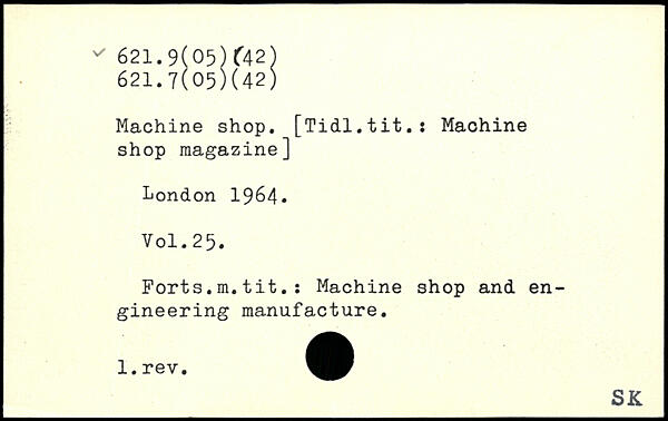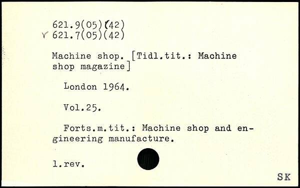 Machine shop. [Tidl.tit.: Machine shop magazine]