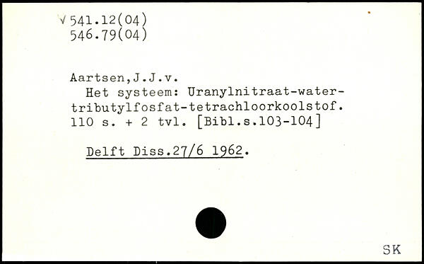 Het systeemï Uranylnitraat-water-tributylfosfat-tetrachloorkoolstof.
