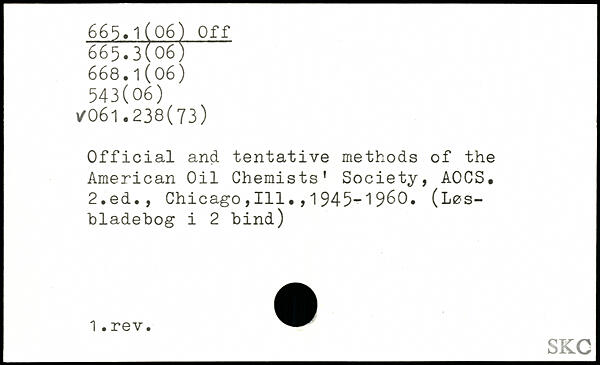 Official and. tentative methods of the American Oil Chemists' Society, AOCS.