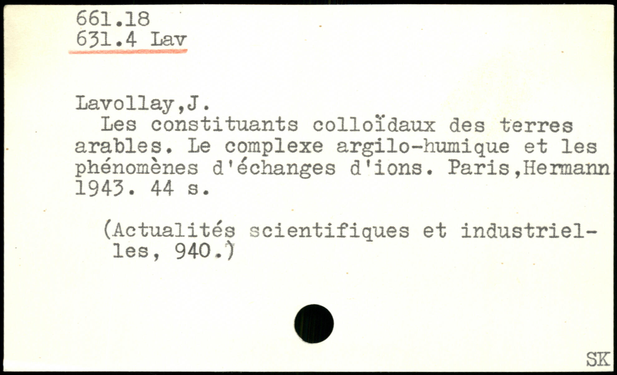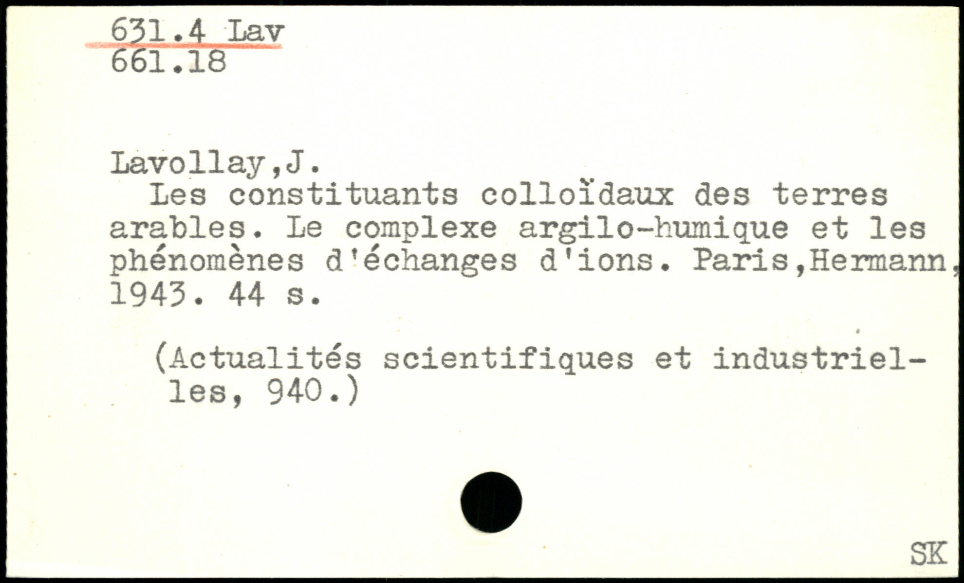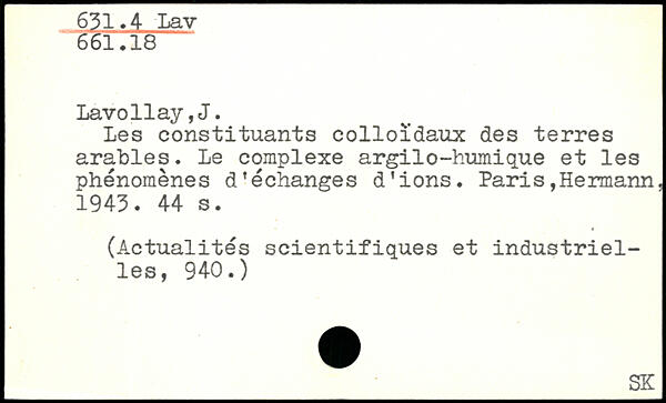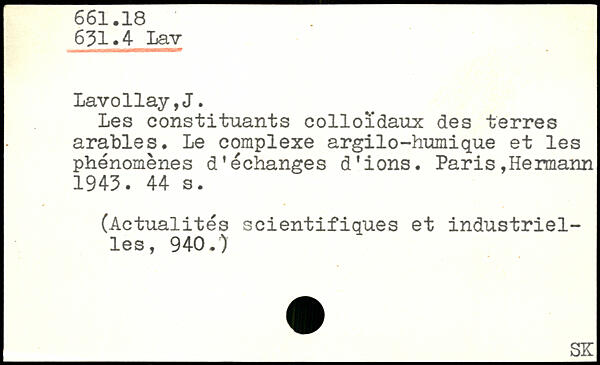 Les constituants colloïdaux des terres arables. Le complexe argilo-humique et les phénomènes déchanges d’ions. Paris,Hermann. 1943.
