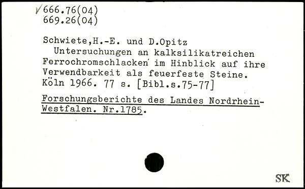 Untersuchungen an kalksilikatreichen Ferrochromschlackeh im Hinblick auf ihre Verwendbarkeit als feuerfeste Steine.