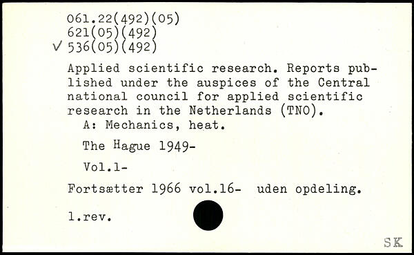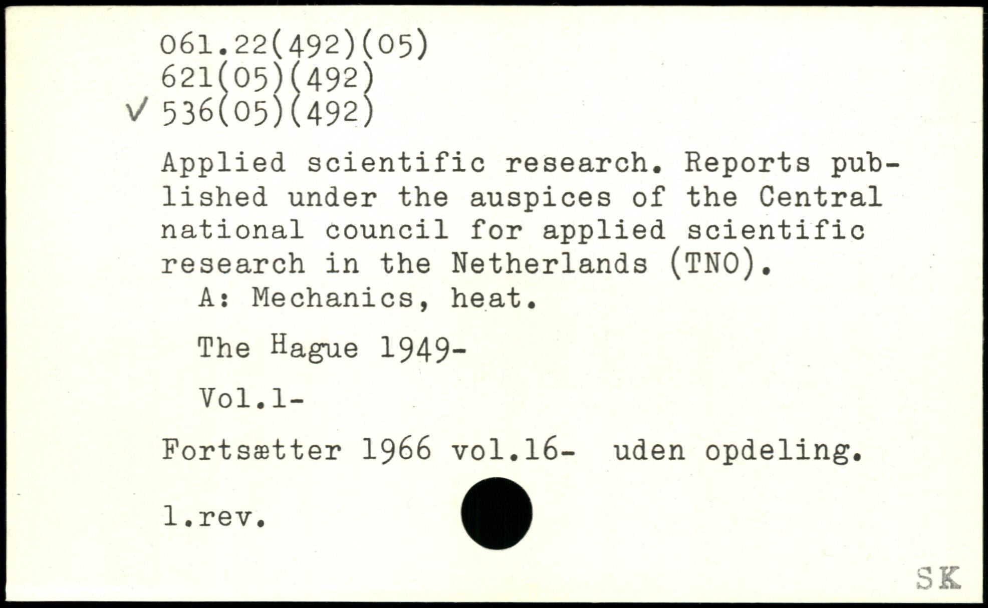 Applied, scientific research. Reports published under the auspices of the Central national council for applied scientific research in the Netherlands (TNO). A: Mechanics, heat.