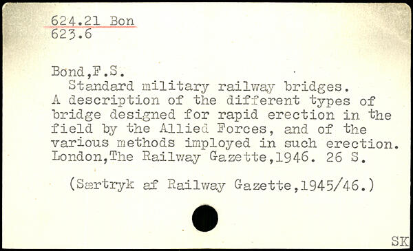Standard military railway "bridges. A description of the different types of bridge designed for rapid erection in the field by the Allied Forces, and of the various methods imployed in such erection.
