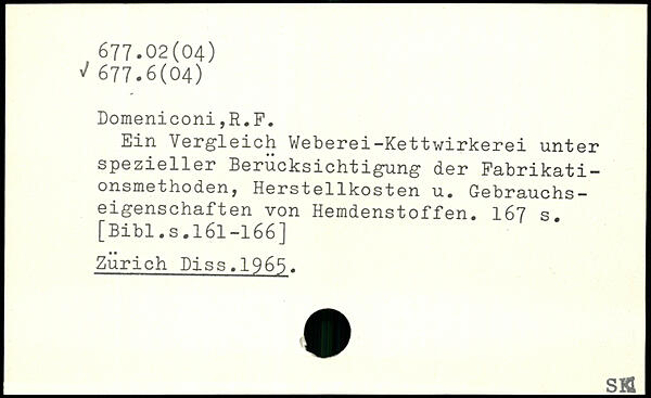 Ein Vergleich Weberei-Kettwirkerei unter spezieller Berücksichtigung der Fabrikati- j onsmethoden, Herstellkosten u. Gebrauchseigenschaf t en von Hemdenstoffen.